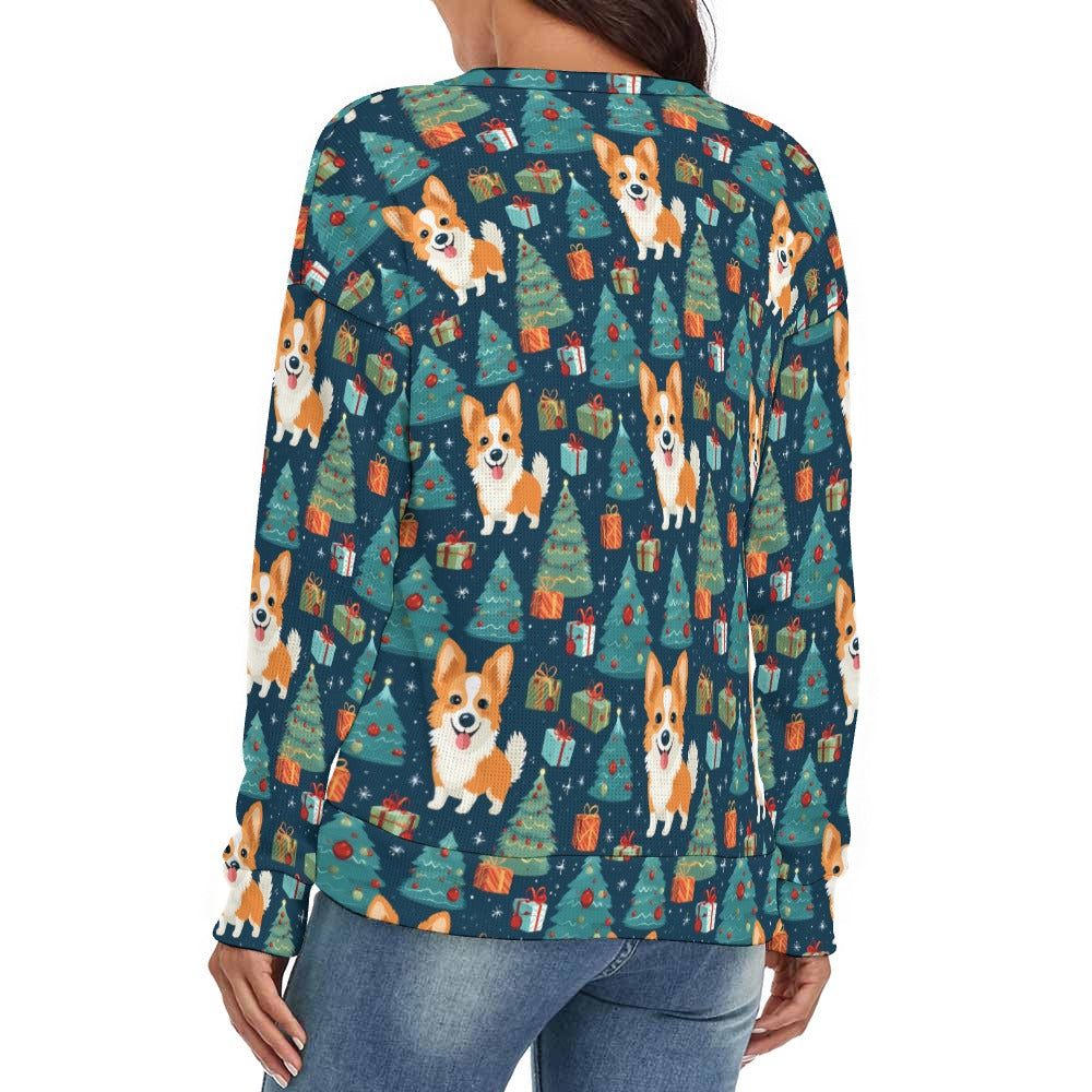 Celebrate the joy of the season with our Corgi Celebration Women's V-Neck Christmas Sweater, a must-have for every Corgi lover!