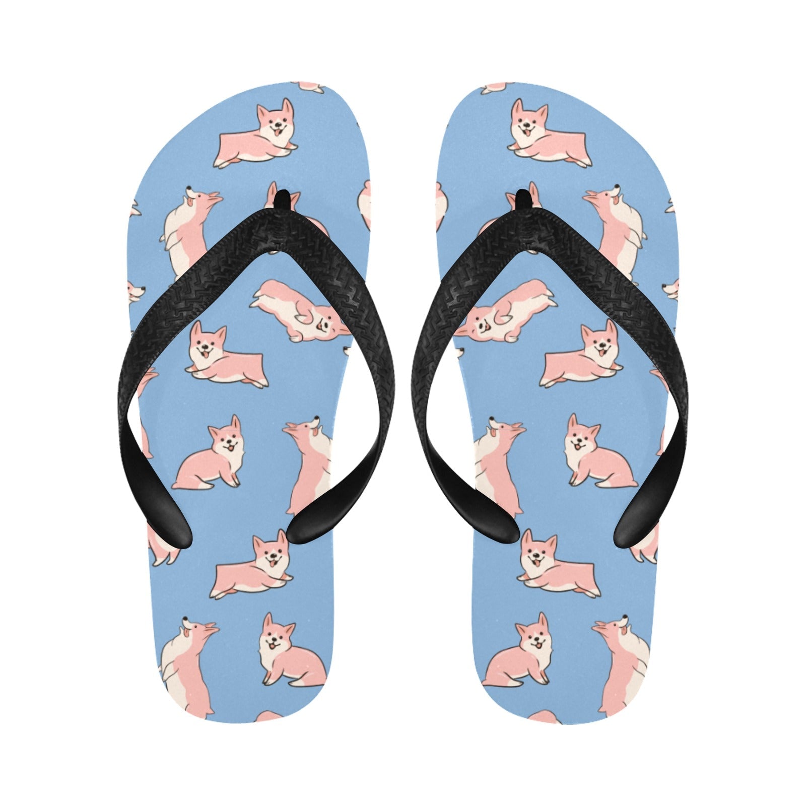 Playful Corgi Love Unisex Slippers-Footwear-Accessories, Corgi, Dog Mom Gifts, Slippers-Sky Blue-S-18