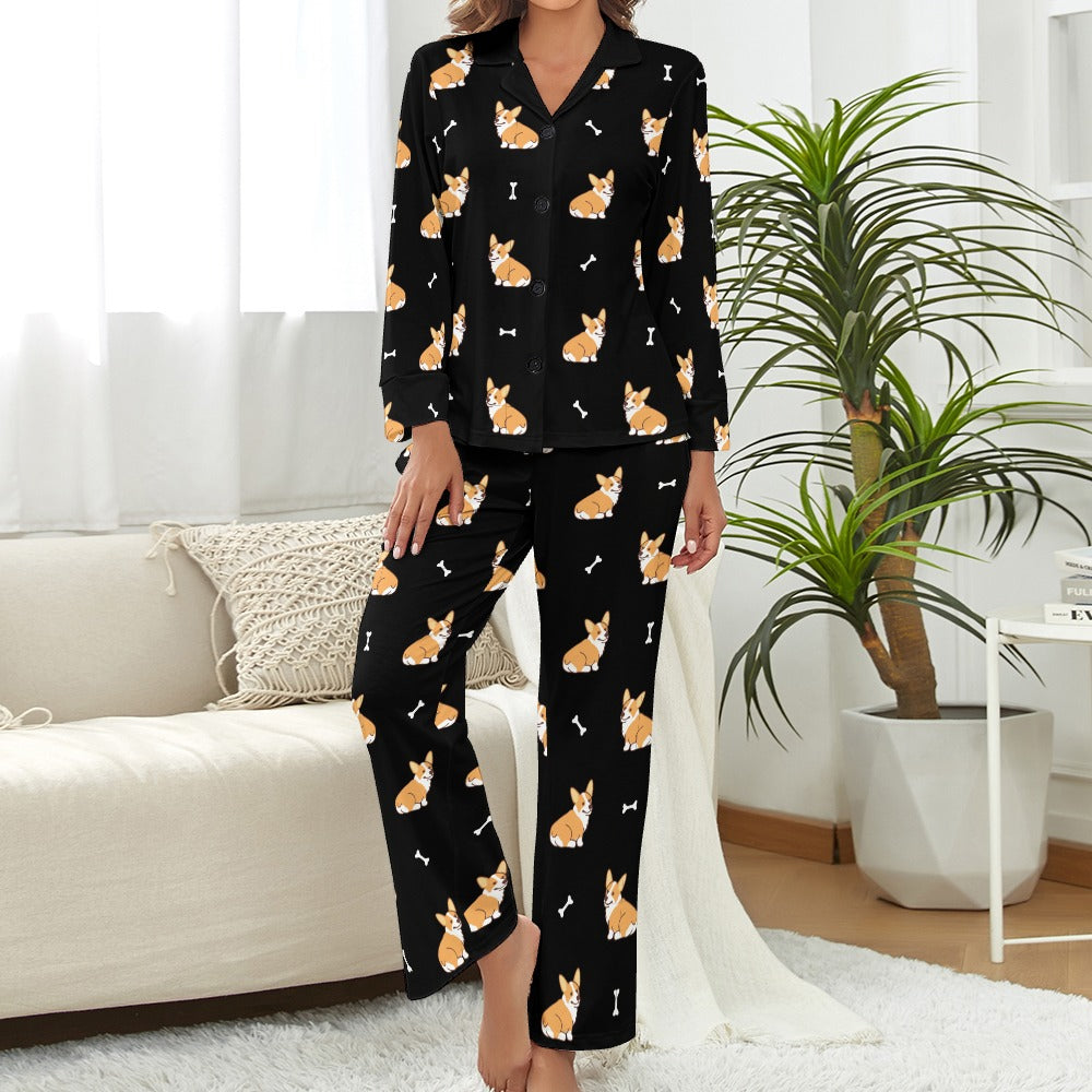 Adorable Corgi Love Pajamas Set for Women-Midnight Black-XS-36