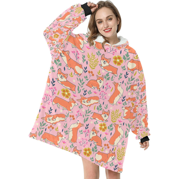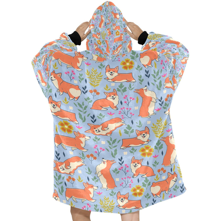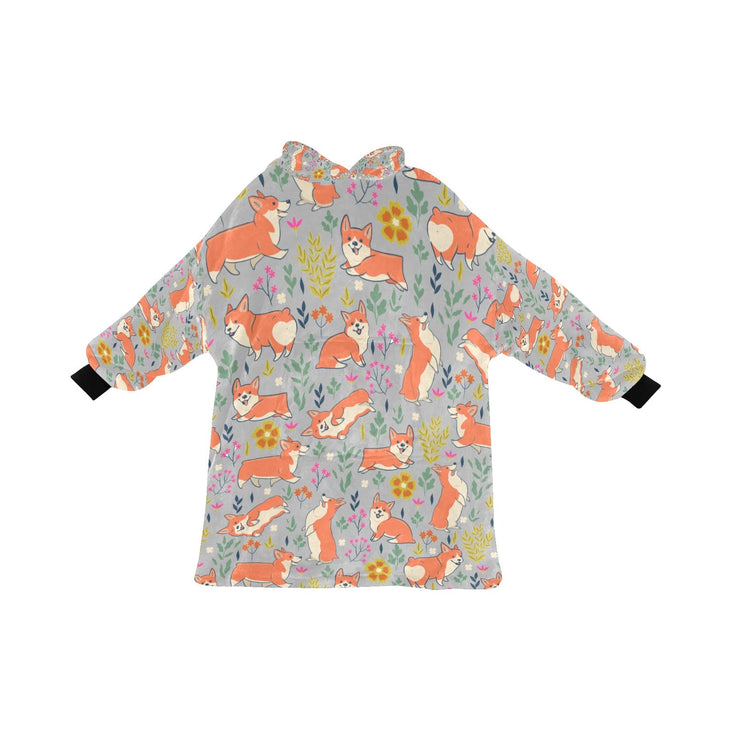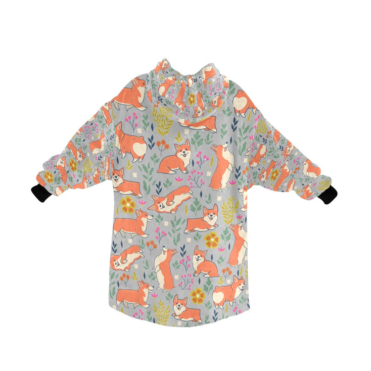 Flower Garden Corgis Blanket Hoodie for Women - 4 Colors