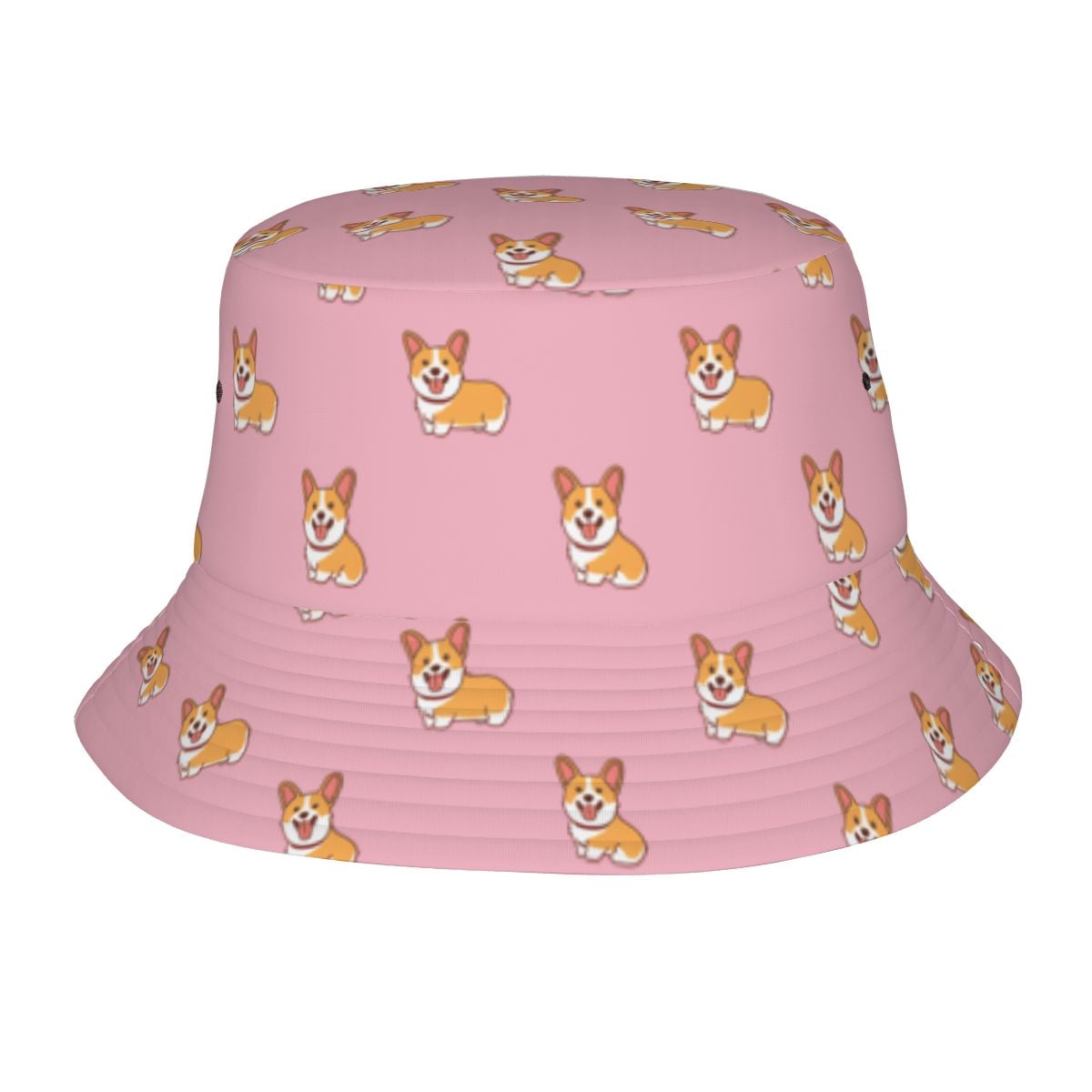 Happy Corgi Delight Bucket Hat-Hats & Caps-Accessories,Corgi,Dog Dad Gifts,Dog Mom Gifts,Hats-Light Pink-One Size-33