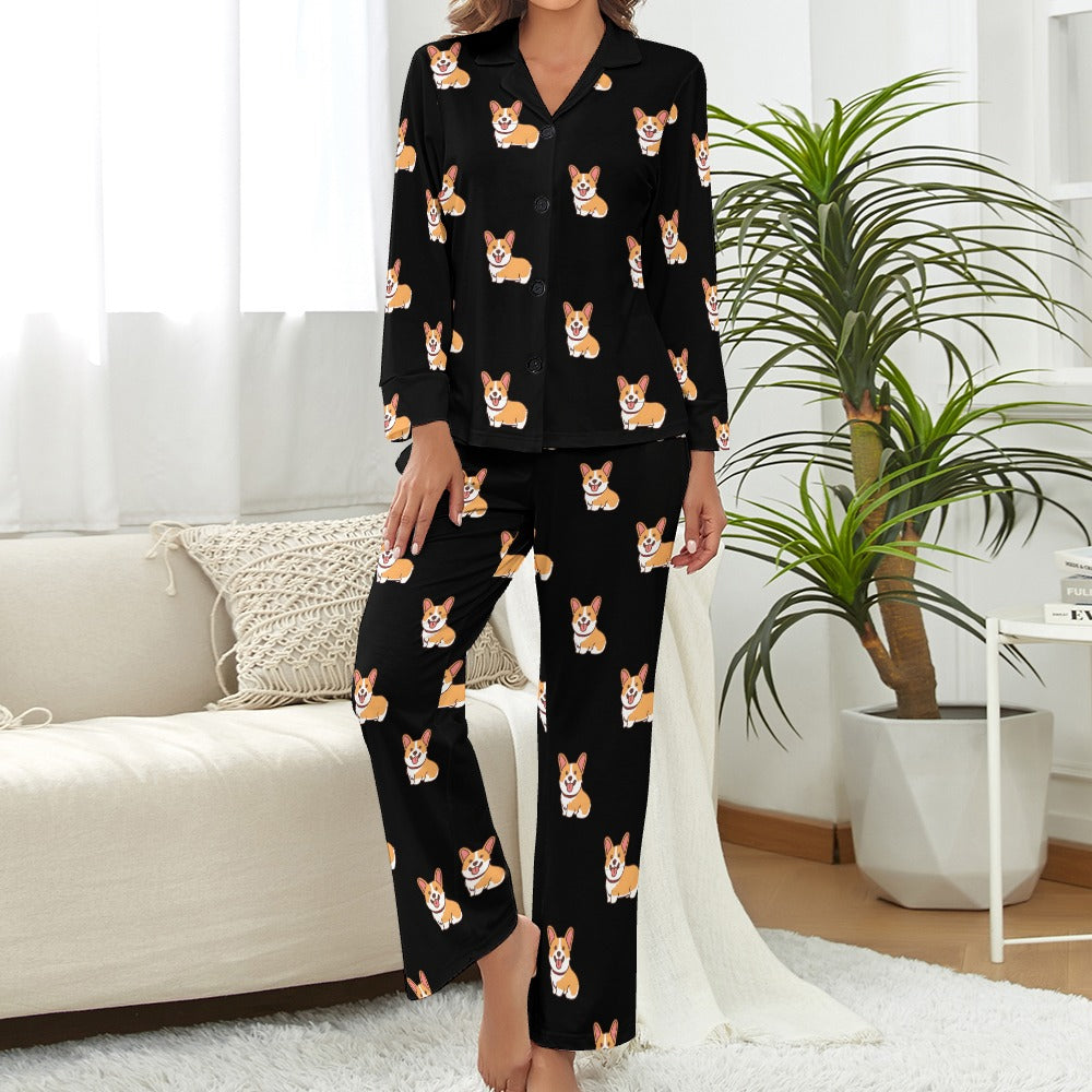 Snuggle up in joy with our Happy Corgi Delight Pajamas Set for Women.