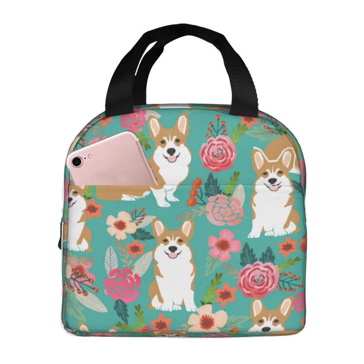 Pembroke Welsh Corgis in Bloom Insulated Lunch Bag with Exterior Pocket
