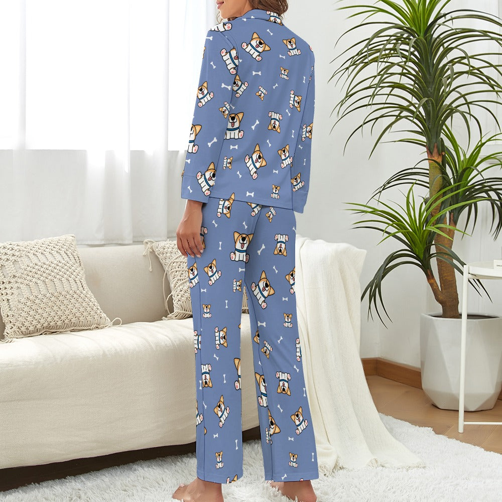 Playful Corgi Antics Pajamas Set for Women-S-CornflowerBlue_1-23