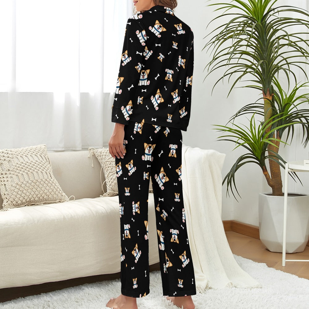 Playful Corgi Antics Pajamas Set for Women-22