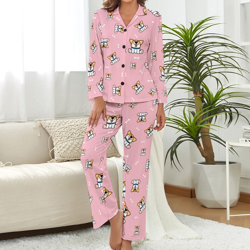 Playful Corgi Antics Pajamas Set for Women-17