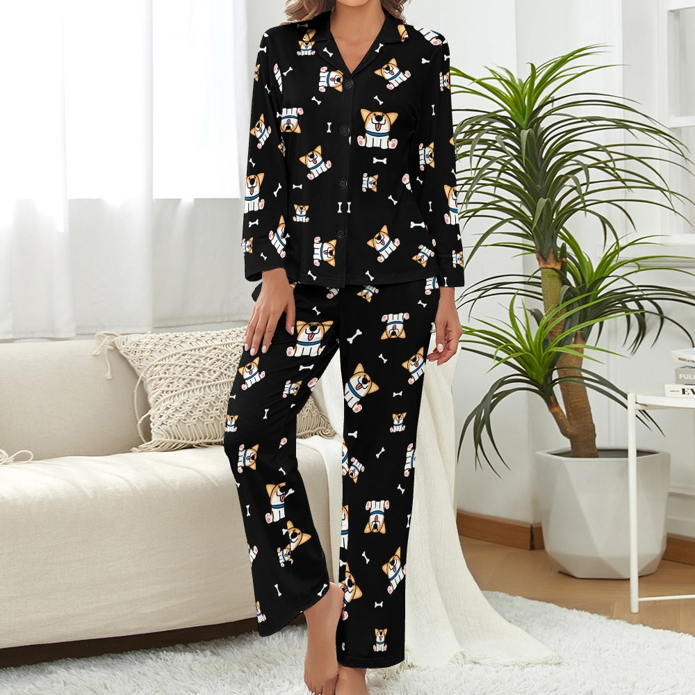Playful Corgi Antics Pajamas Set for Women-11