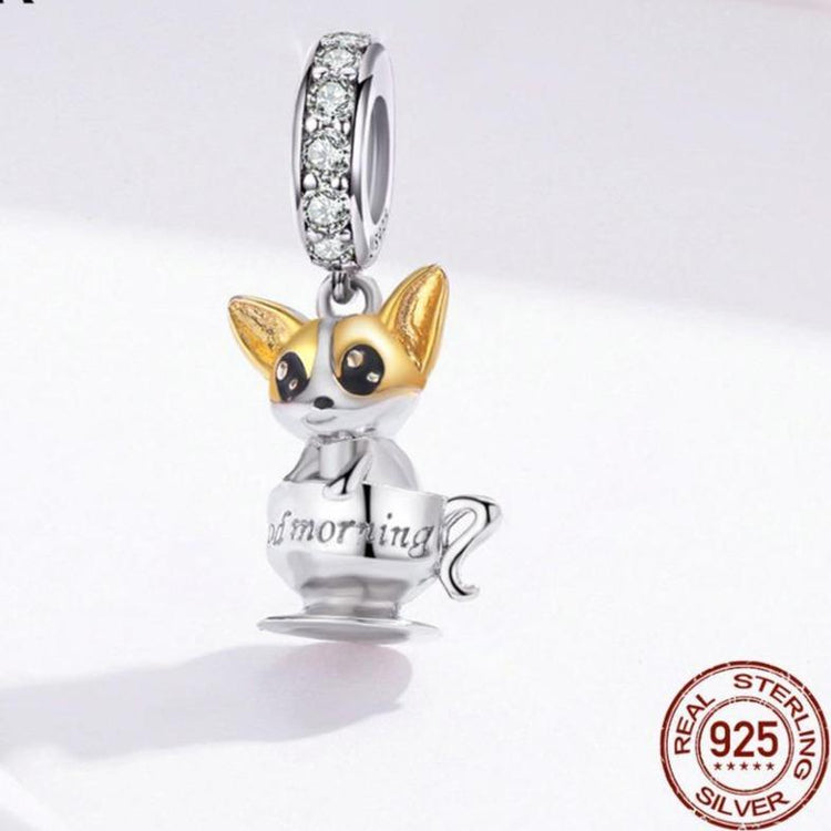 Add this cutest teacup Corgi silver charm pendant to your necklace, keychain, handbag or anywhere you please!