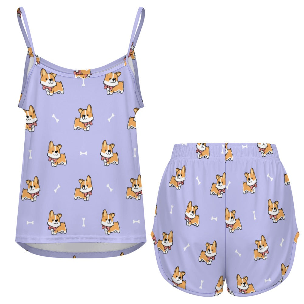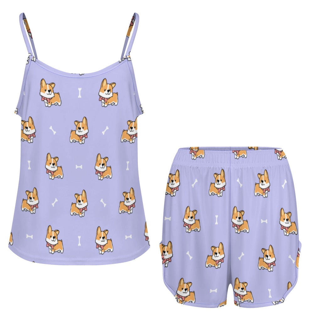 Elegant Corgi Delight Women's Cami and Shorts Pajama Set