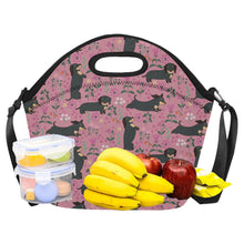 Flower Garden Black Dachshund Neoprene Lunch Bag-PaleVioletRed-ONESIZE-11