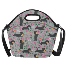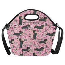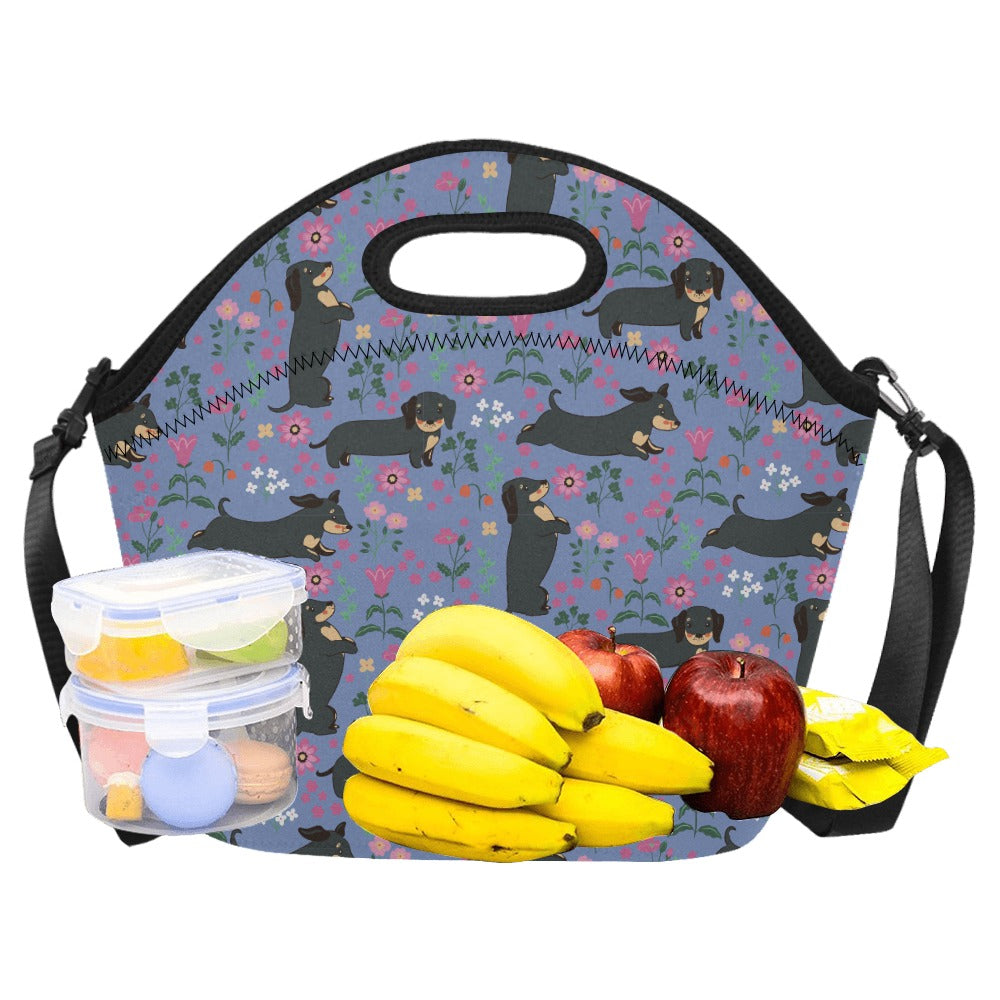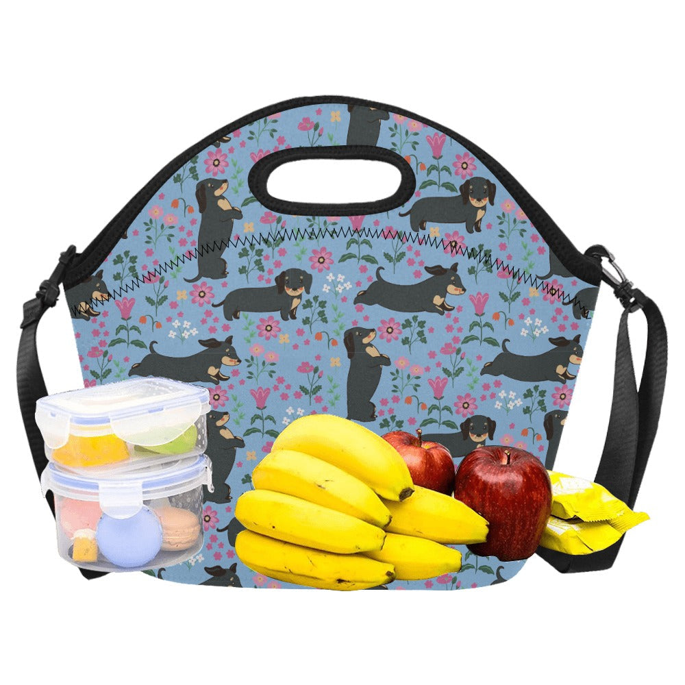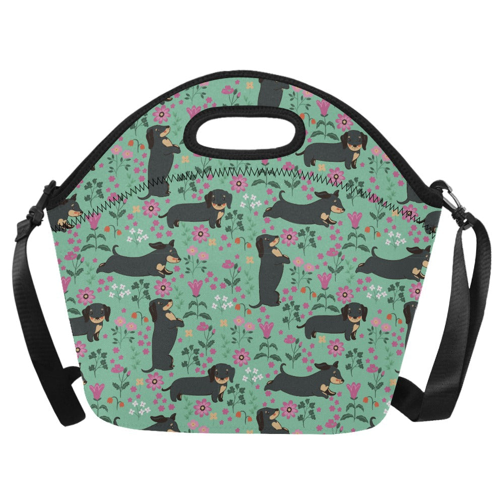 Flower Garden Black Dachshund Neoprene Lunch Bag-34