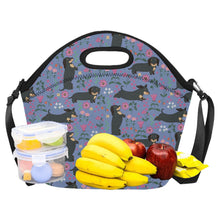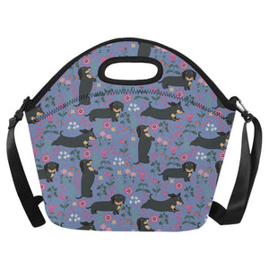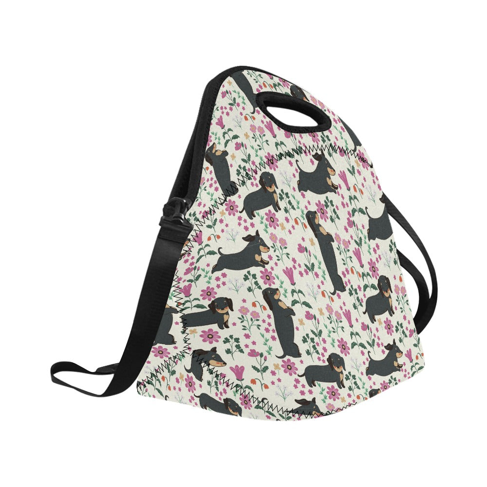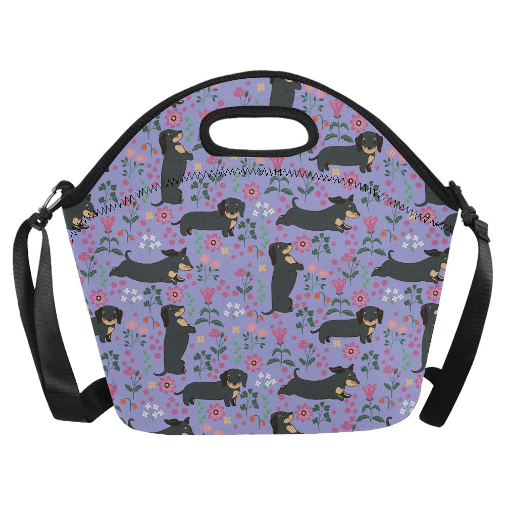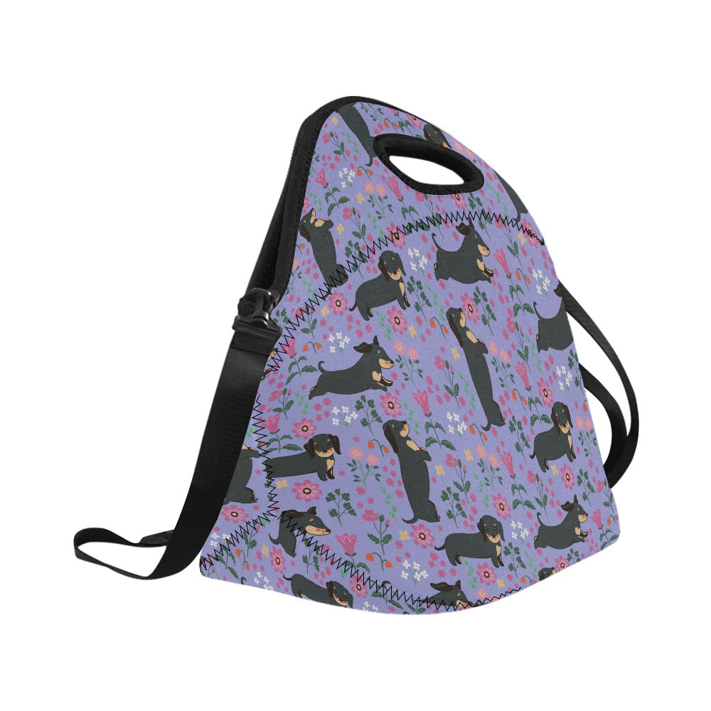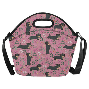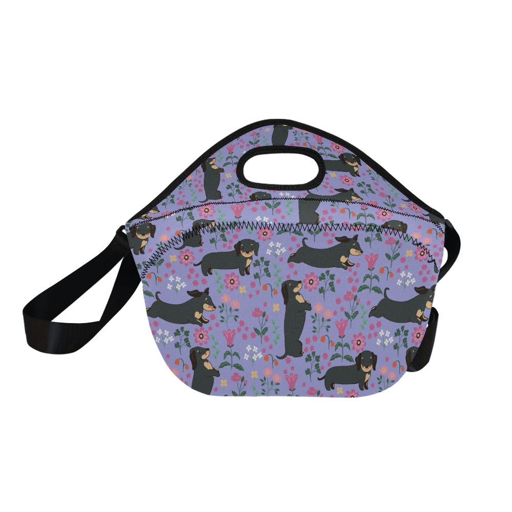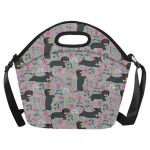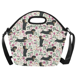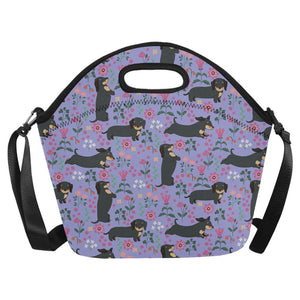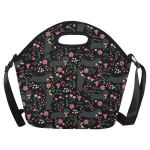 Flower Garden Black Dachshund Neoprene Lunch Bag