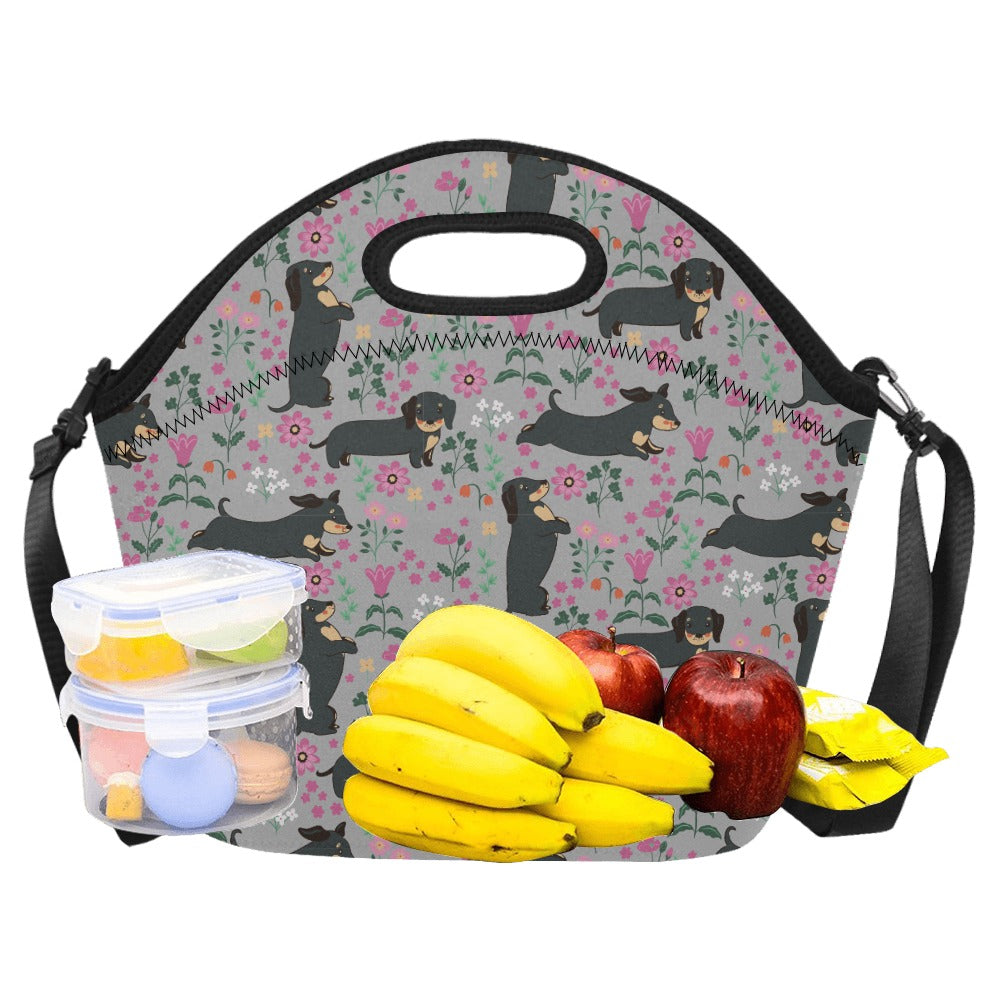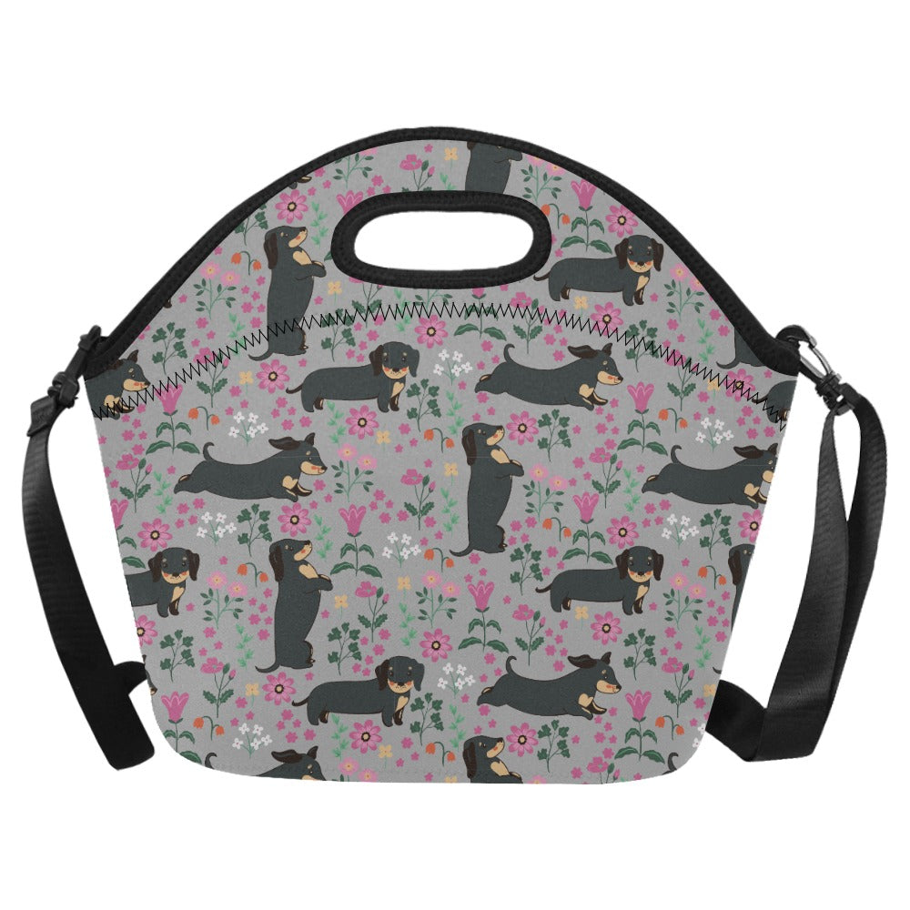 Flower Garden Black Dachshund Neoprene Lunch Bag-DarkGray-ONESIZE-36