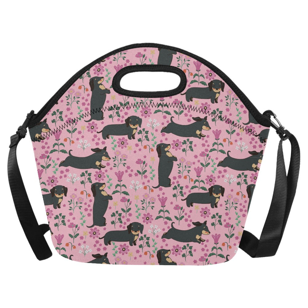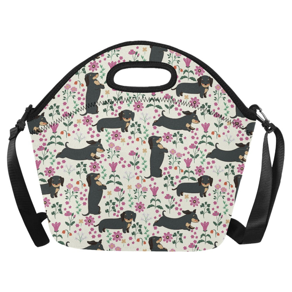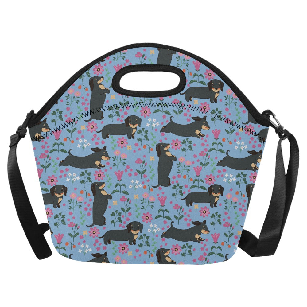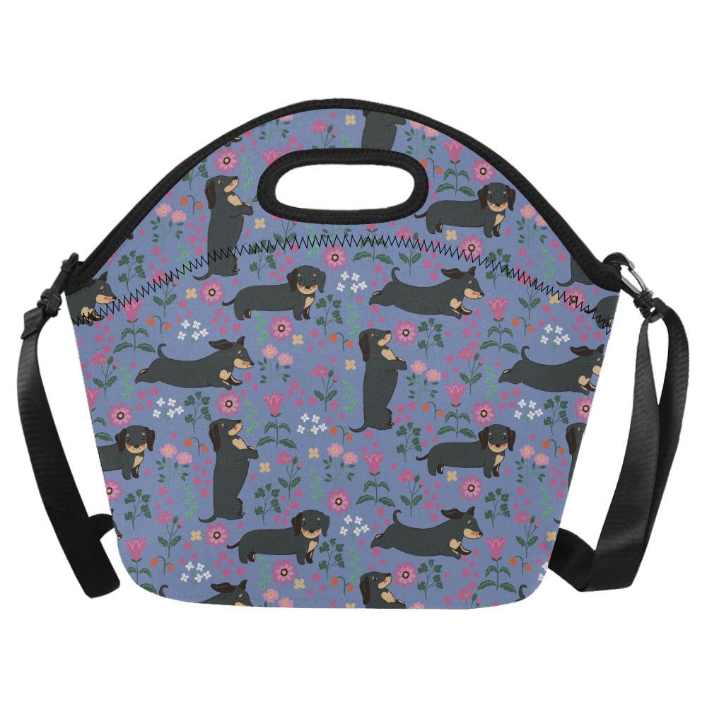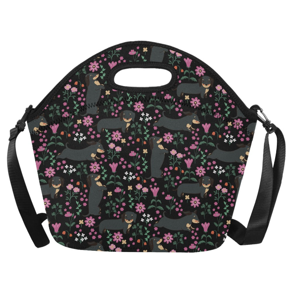 Flower Garden Black Dachshund Neoprene Lunch Bag-23