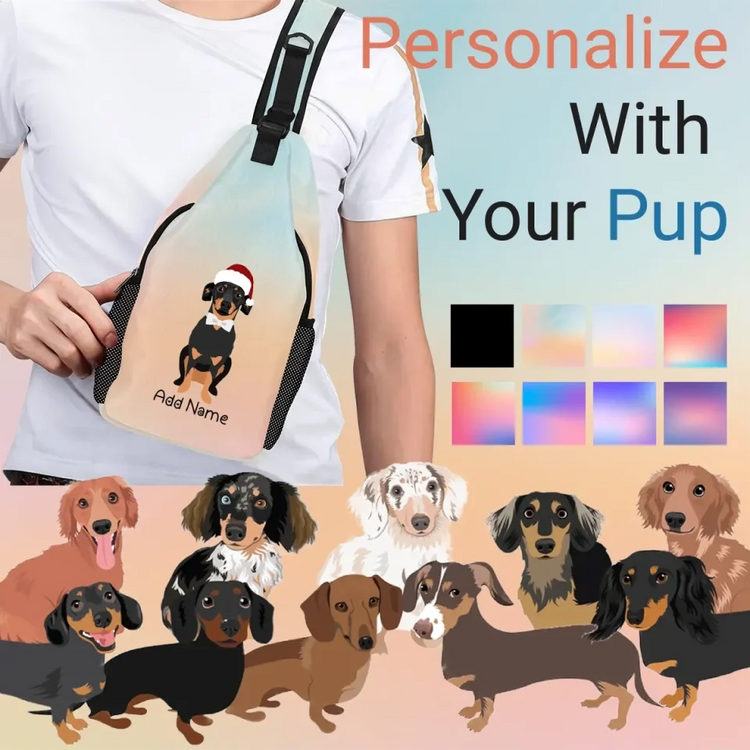 Our Personalized Dachshund Love Unisex Sling Bag Backpack is a heartfelt gift for Dachshund enthusiasts. Unleash your furry love with our unique gifts for Dachshund lovers, designed to bring a smile to your face.