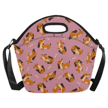 Playful Chocolate and Tan Dachshunds Neoprene Lunch Bag-Dusty Pink-ONESIZE-5