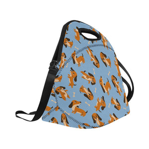 Playful Chocolate and Tan Dachshunds Neoprene Lunch Bag