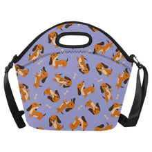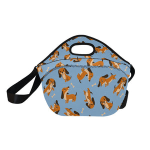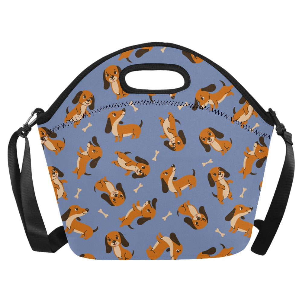 Playful Chocolate and Tan Dachshunds Neoprene Lunch Bag-Slate Blue-ONESIZE-7