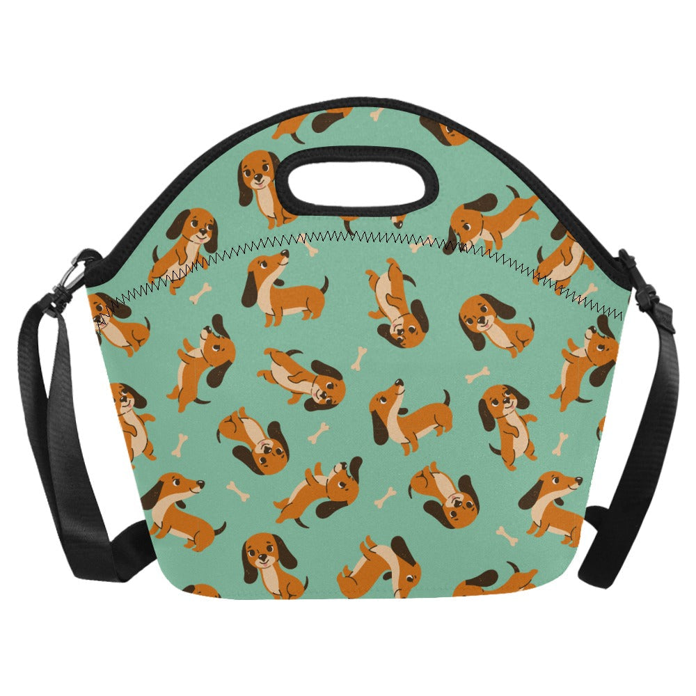Celebrate your love for Dachshunds with our Playful Chocolate and Tan Dachshunds Neoprene Lunch Bag, a delightful accessory that brings joy to every meal.