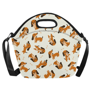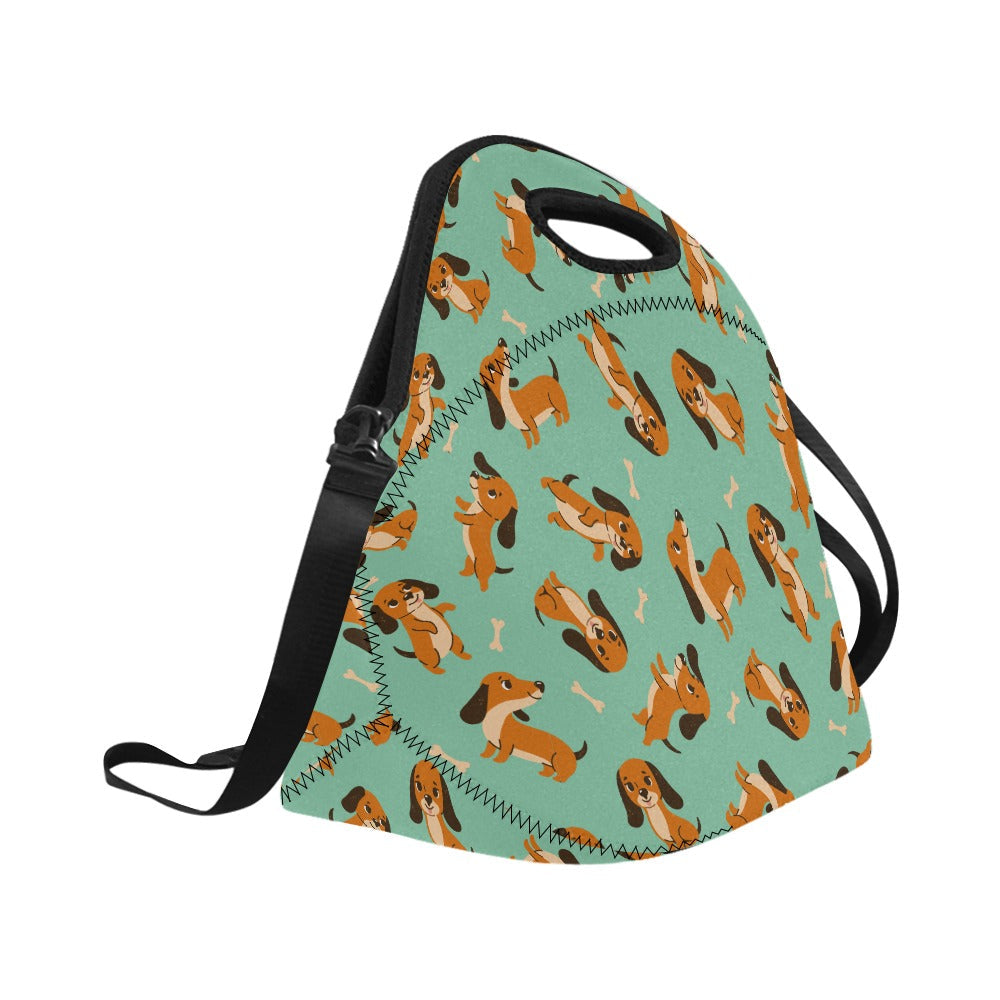 Playful Chocolate and Tan Dachshunds Neoprene Lunch Bag-24