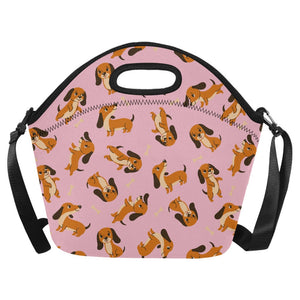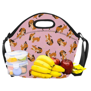 Playful Chocolate and Tan Dachshunds Neoprene Lunch Bag-Light Pink-ONESIZE-4