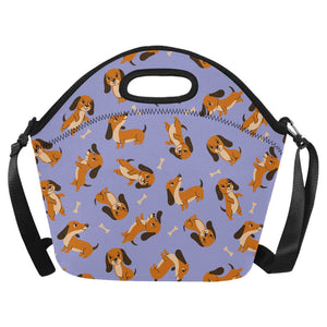 Playful Chocolate and Tan Dachshunds Neoprene Lunch Bag-Lavender Purple-ONESIZE-8