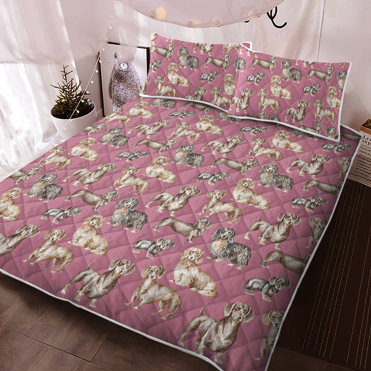 Watercolor Celebration Dachshunds Quilted Bedding Set - 5 Colors