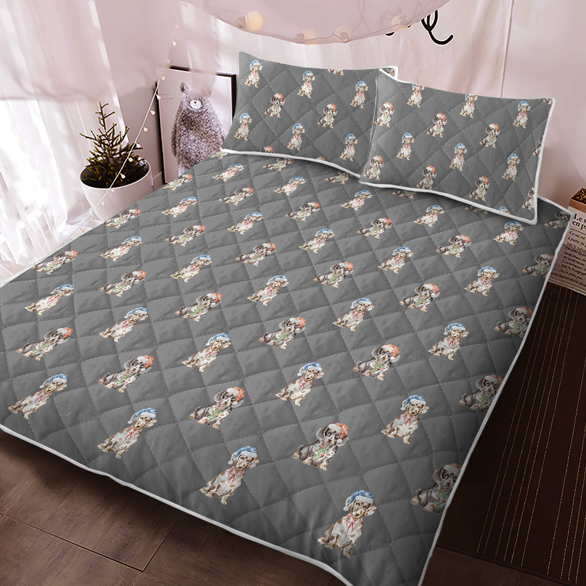 Watercolor Elegance Piebald Dachshunds Christmas Quilted Bedding Set
