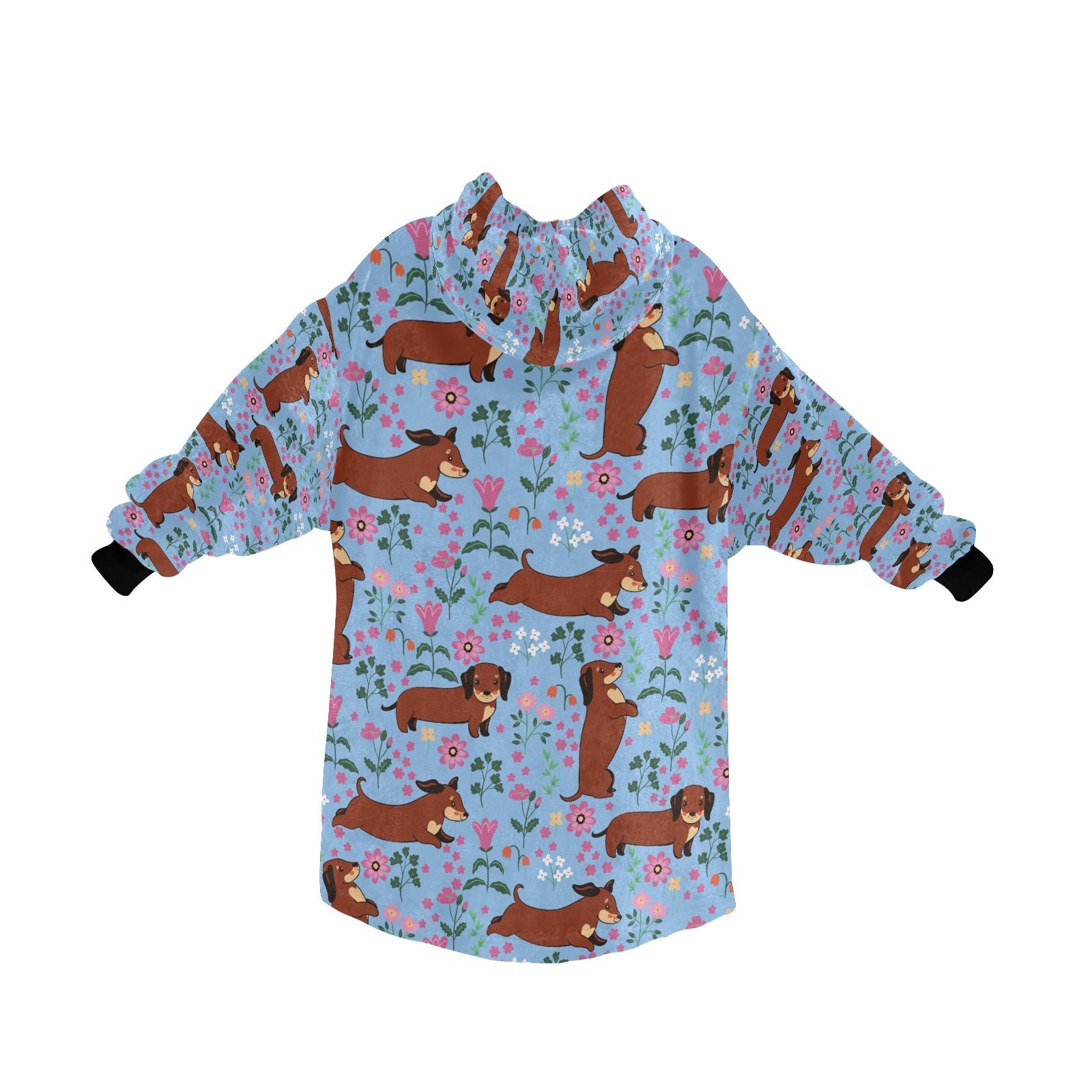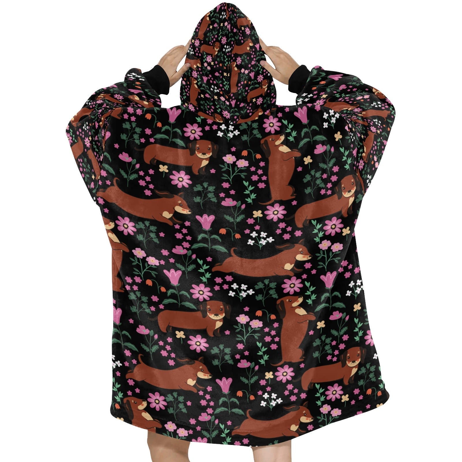 Wrap yourself in joy with our Flower Garden Red Dachshund Blanket Hoodie.