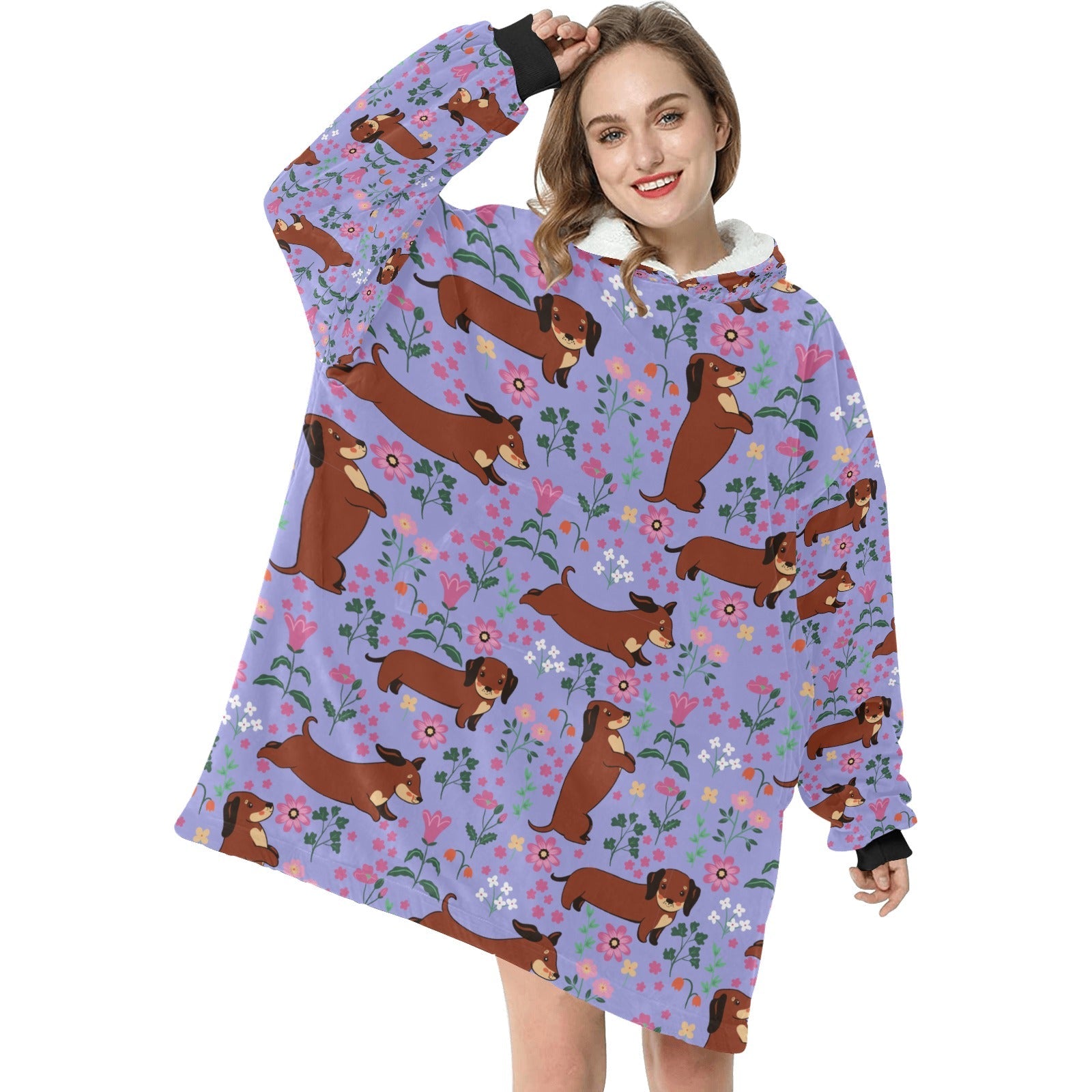 Flower Garden Red Dachshund Blanket Hoodie-Blanket-Apparel, Blanket Hoodie, Blankets, Dachshund, Dog Mom Gifts-Lavender Purple-ONE SIZE-31