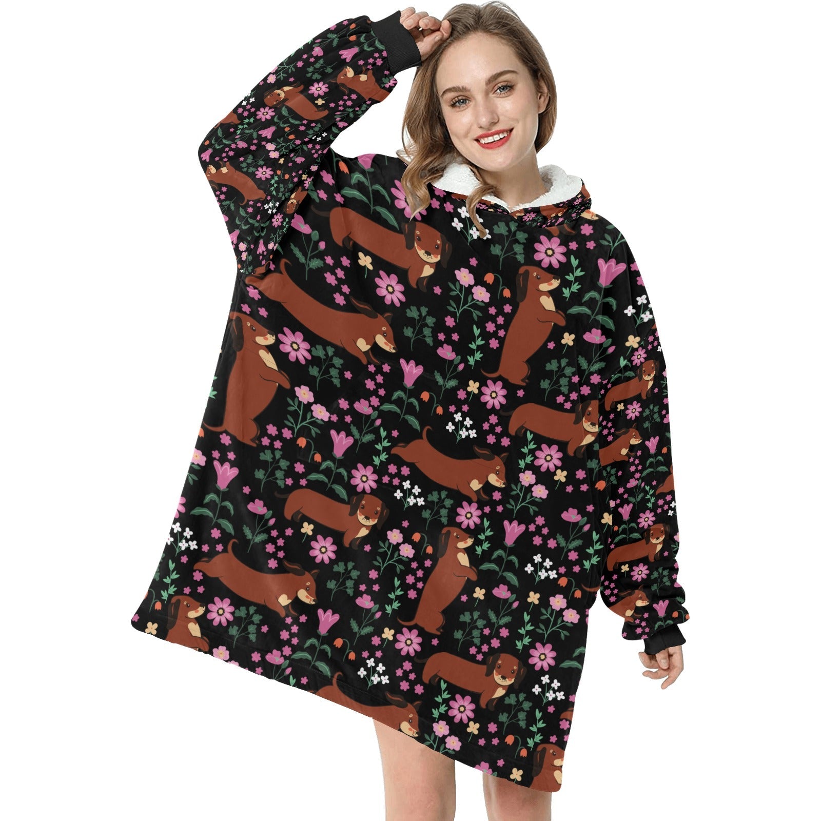 Flower Garden Red Dachshund Blanket Hoodie-Blanket-Apparel, Blanket Hoodie, Blankets, Dachshund, Dog Mom Gifts-1