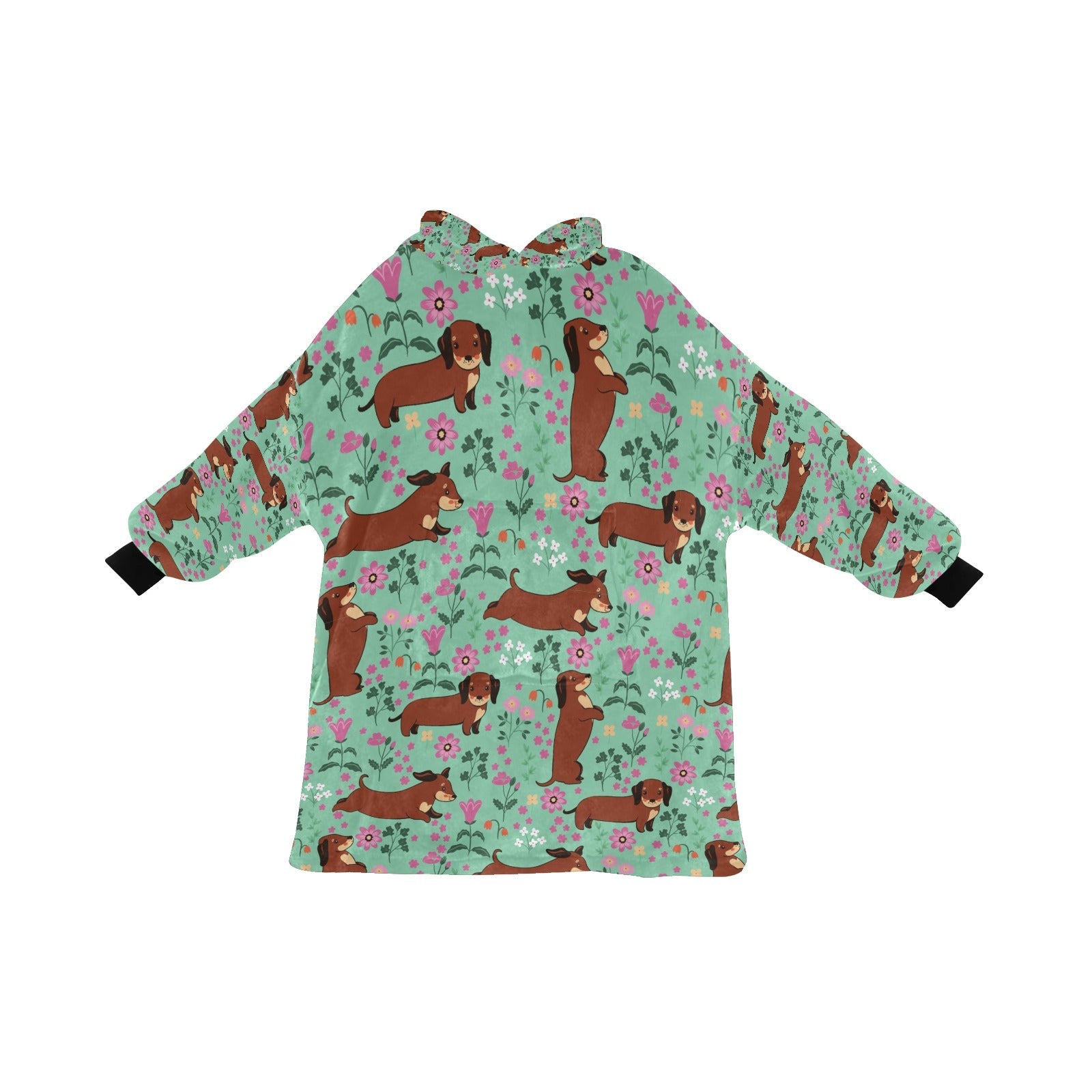 Flower Garden Red Dachshund Blanket Hoodie-Blanket-Apparel, Blanket Hoodie, Blankets, Dachshund, Dog Mom Gifts-24