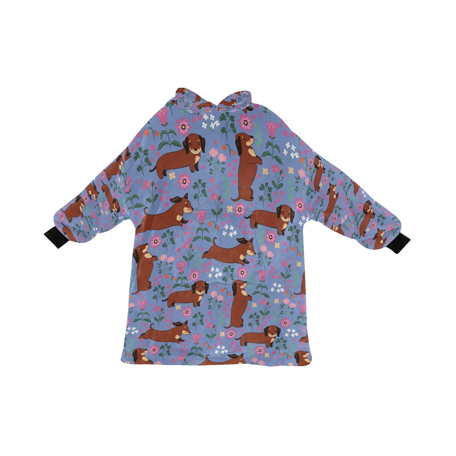 Flower Garden Red Dachshund Blanket Hoodie-Blanket-Apparel, Blanket Hoodie, Blankets, Dachshund, Dog Mom Gifts-29
