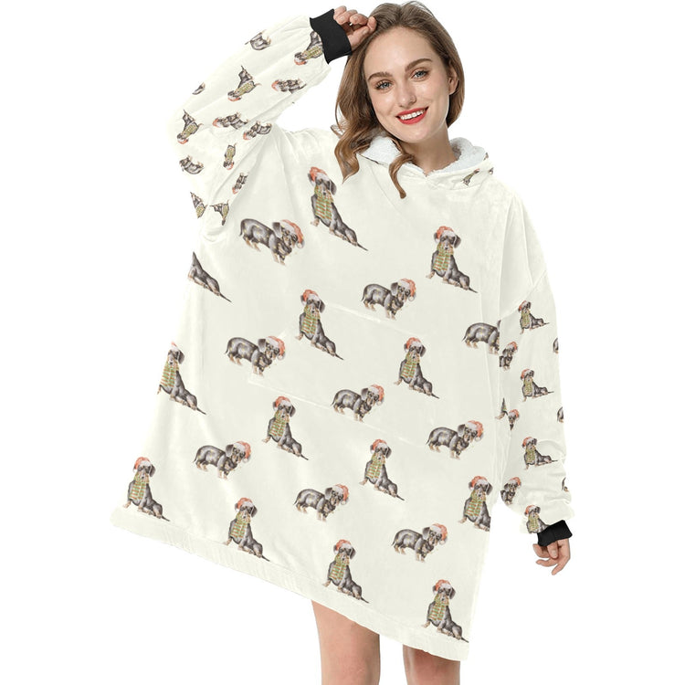 Watercolor Black Tan Dachshunds Christmas Blanket Hoodie-Blanket-Apparel, Blanket Hoodie, Blankets, Christmas, Dachshund, Dog Mom Gifts-19