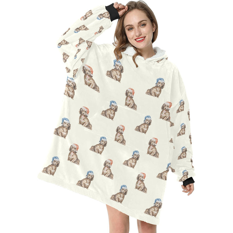 Wrap yourself in holiday joy with our charming Long Haired Chocolate Cream Dachshund Blanket Hoodie!