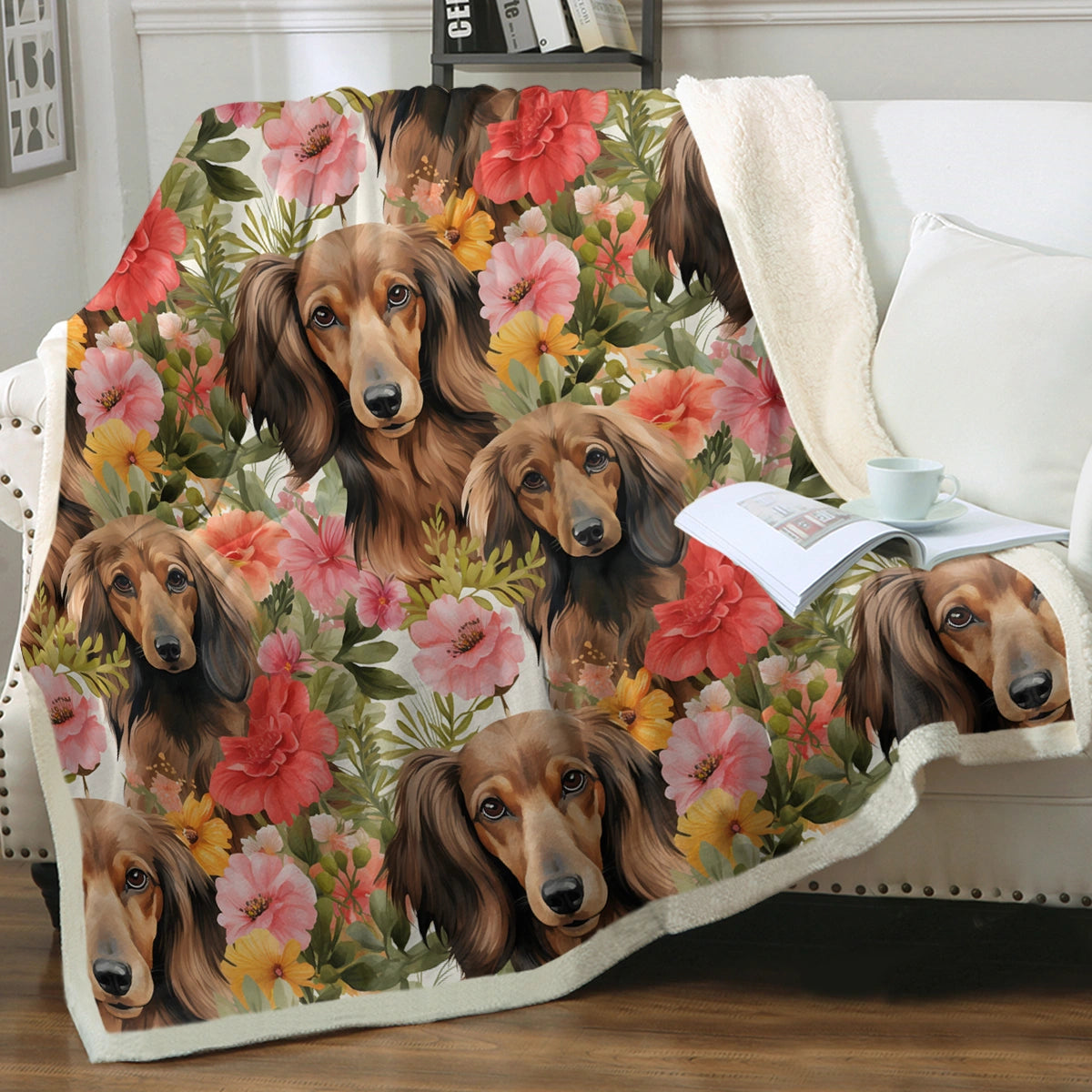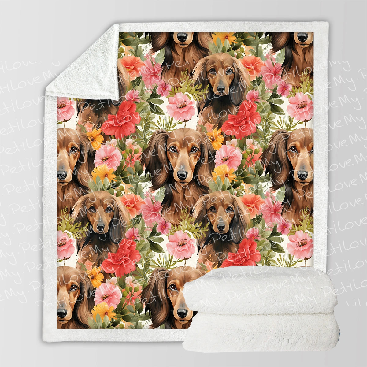 Artistic Flower Garden Chocolate Dachshunds Soft Warm Fleece Blanket