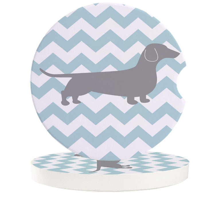Featuring a Blue and White stripes Dachshund design, this beautiful Dachshund coaster is the perfect size to place in your car and avoid any accidental water damage.
