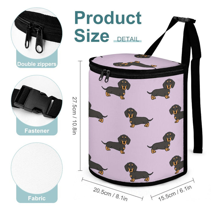 Showcase your love for your favorite four-legged friends and make your car journeys more enjoyable. Designed with both Black and Tan Dachshunds and people in mind, this multipurpose car storage bag comes alive with images of the most adorable Dachshunds spreading joy. Their elongated bodies and playful expressions are brilliantly captured, providing a dash of charm wherever you go.