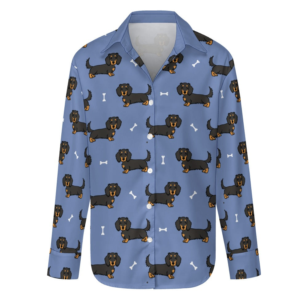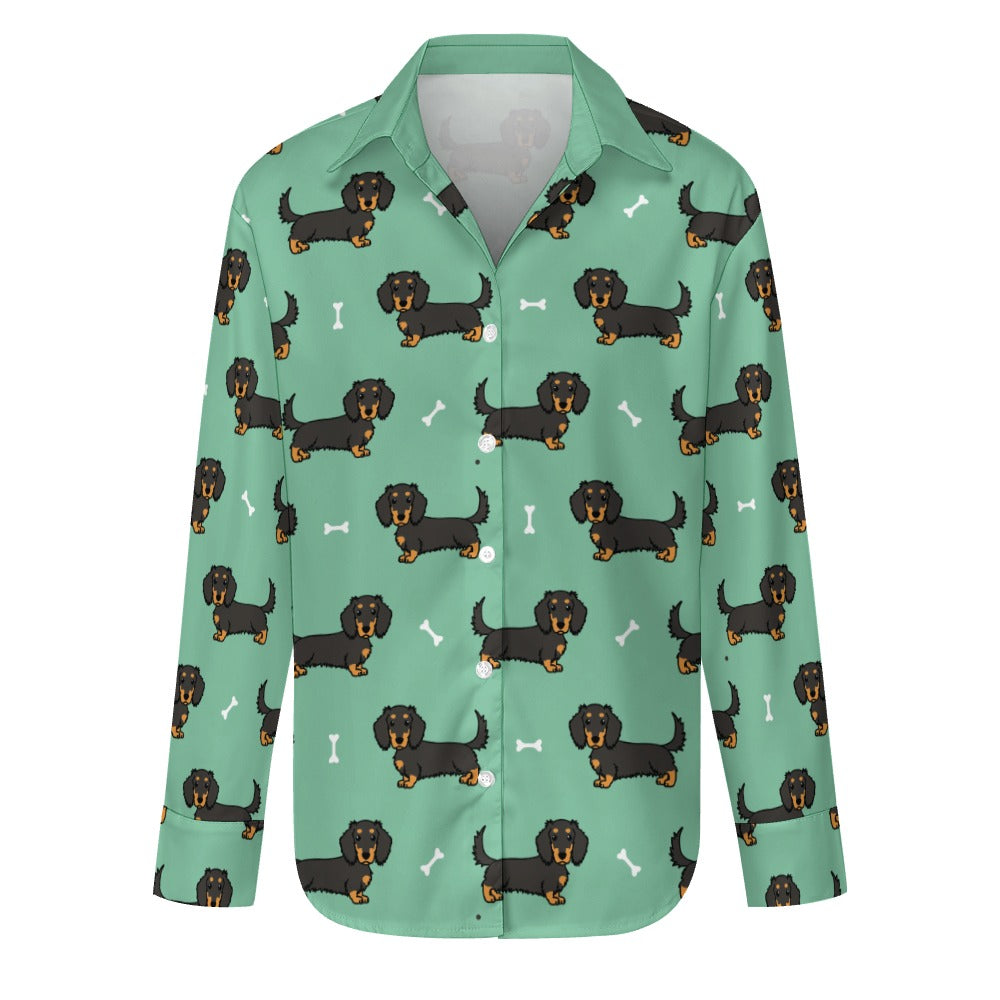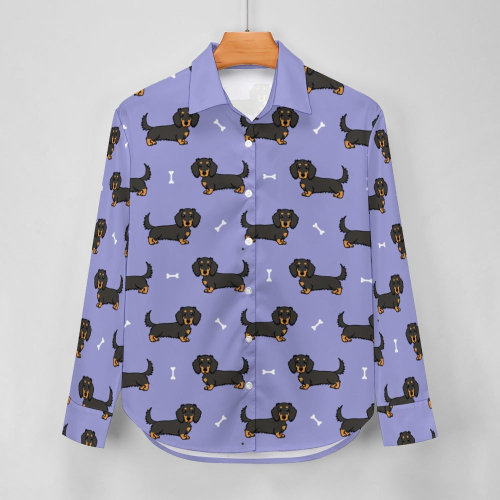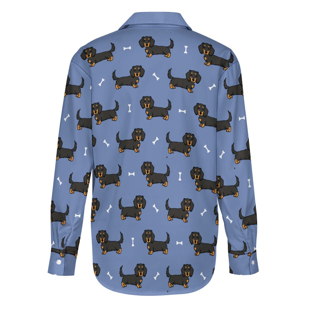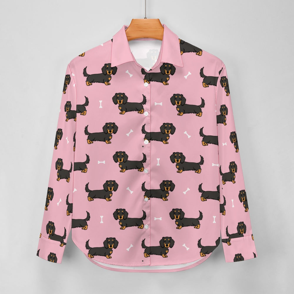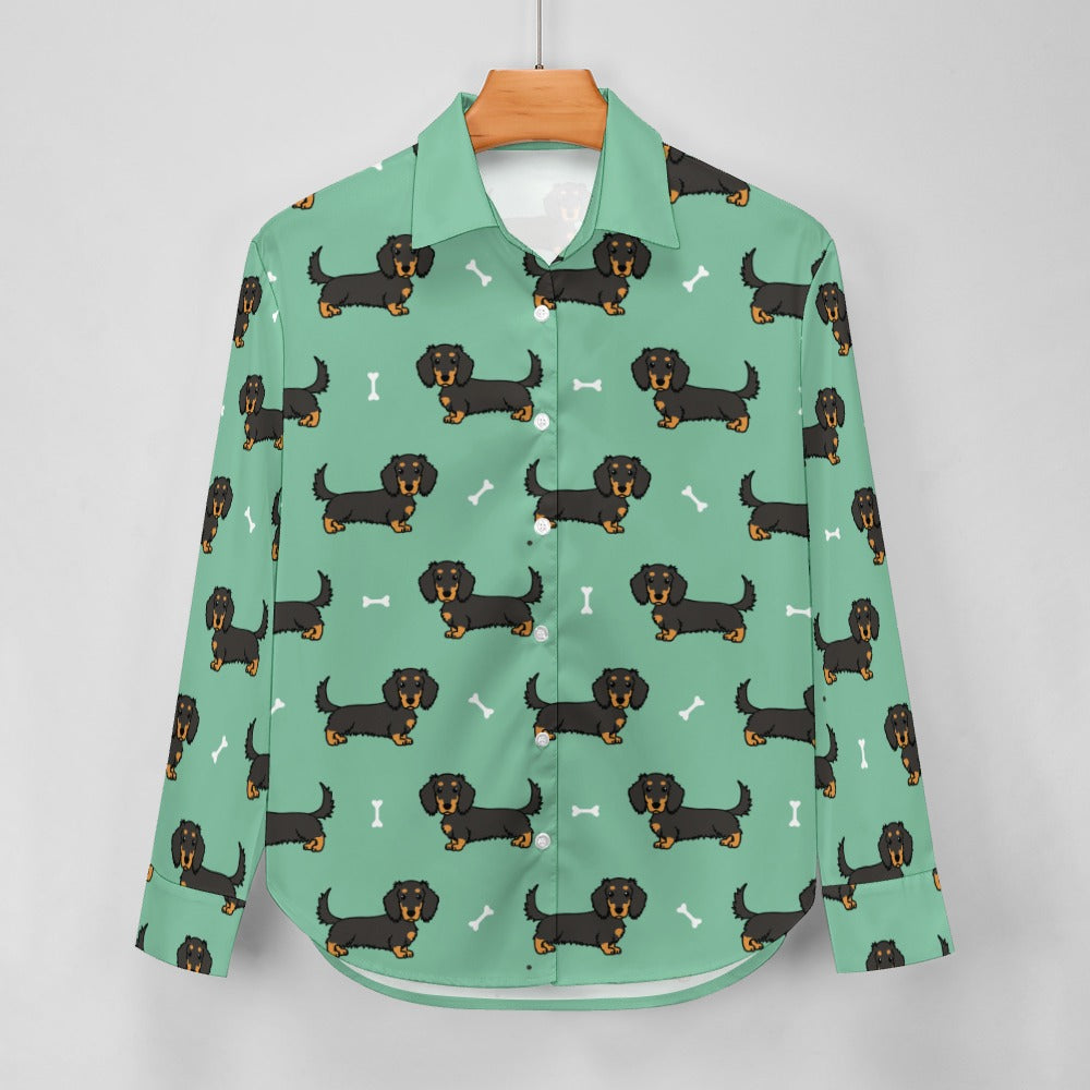 Cutest Long Haired Black Tan Dachshund Women's Shirt-24