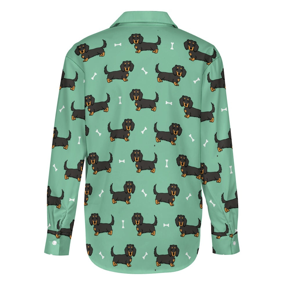 Cutest Long Haired Black Tan Dachshund Women's Shirt-22