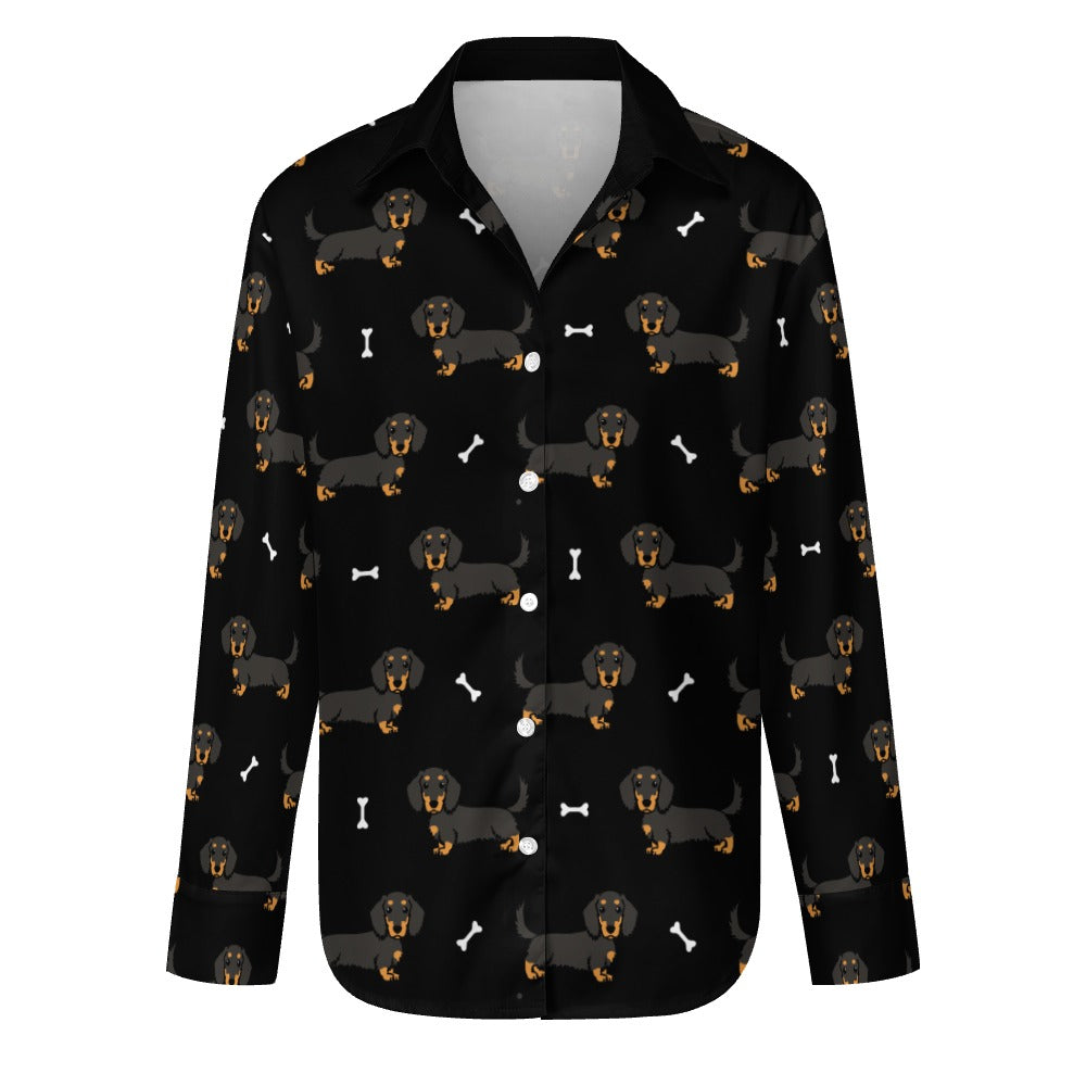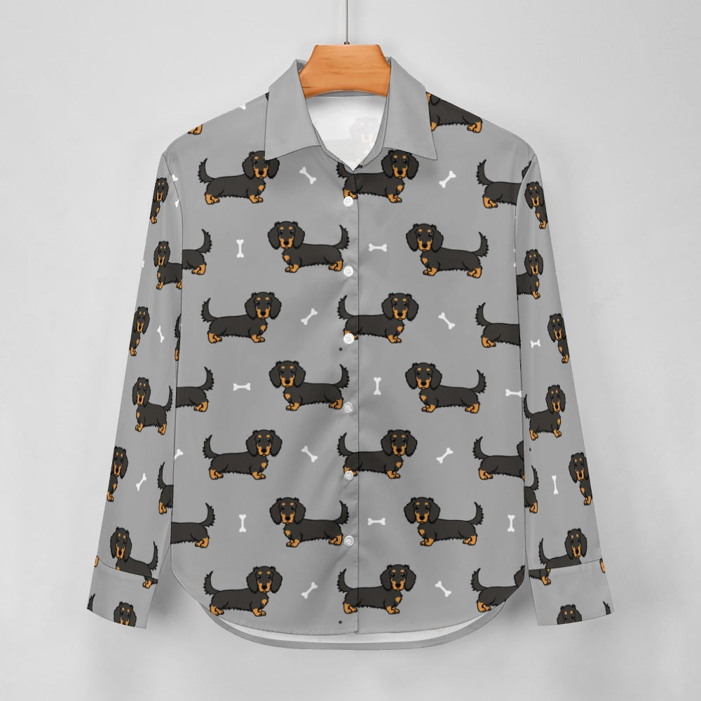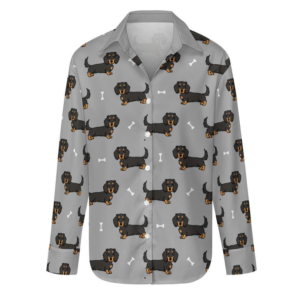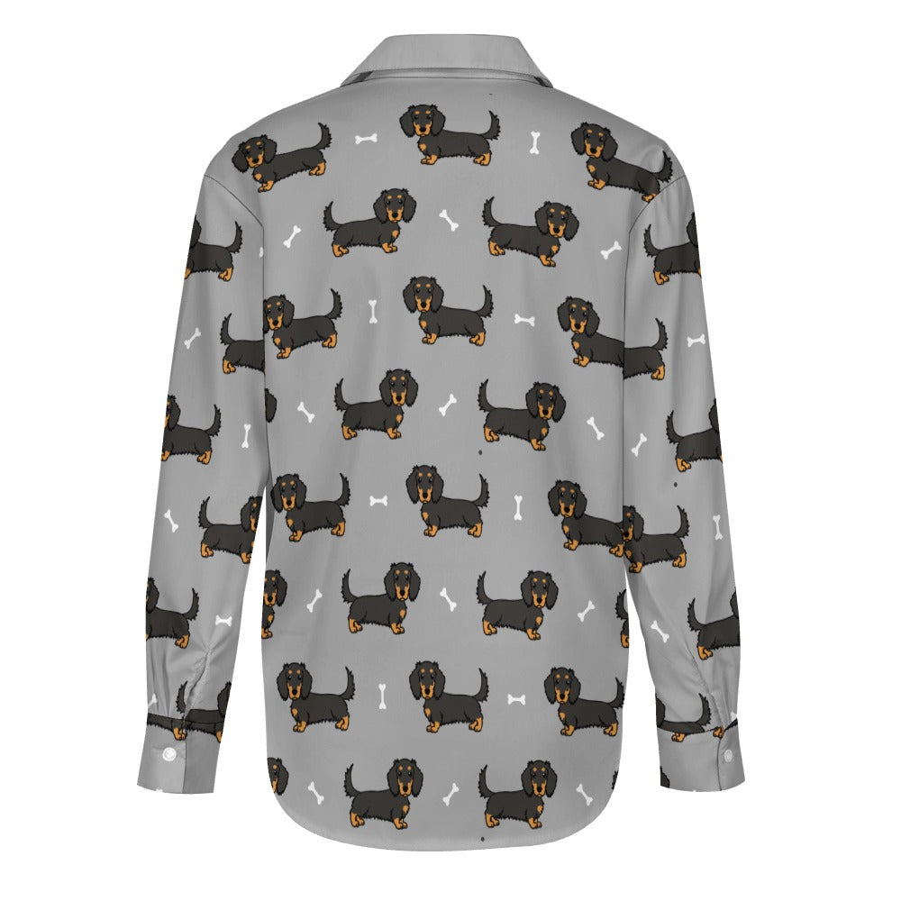 Cutest Long Haired Black Tan Dachshund Women's Shirt-23