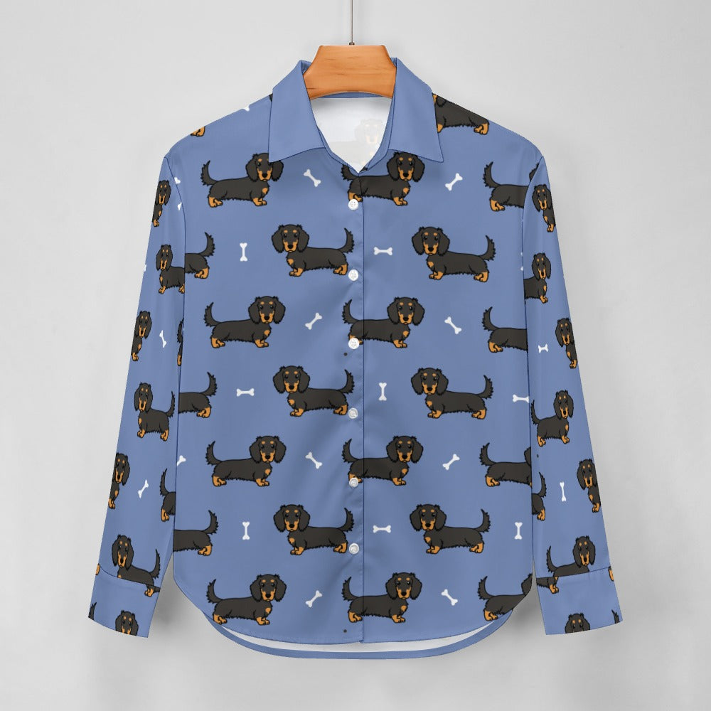 Cutest Long Haired Black Tan Dachshund Women's Shirt-S-CornflowerBlue_1-14