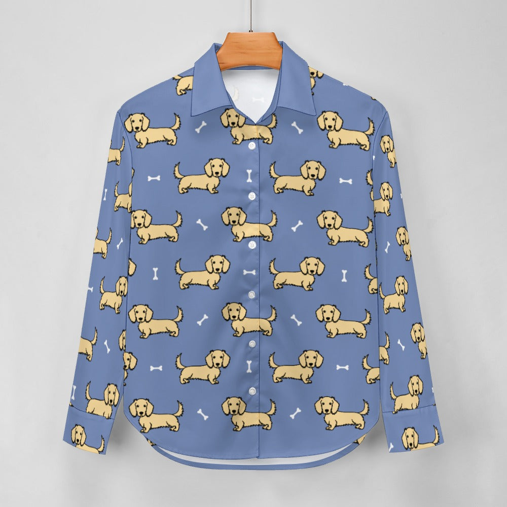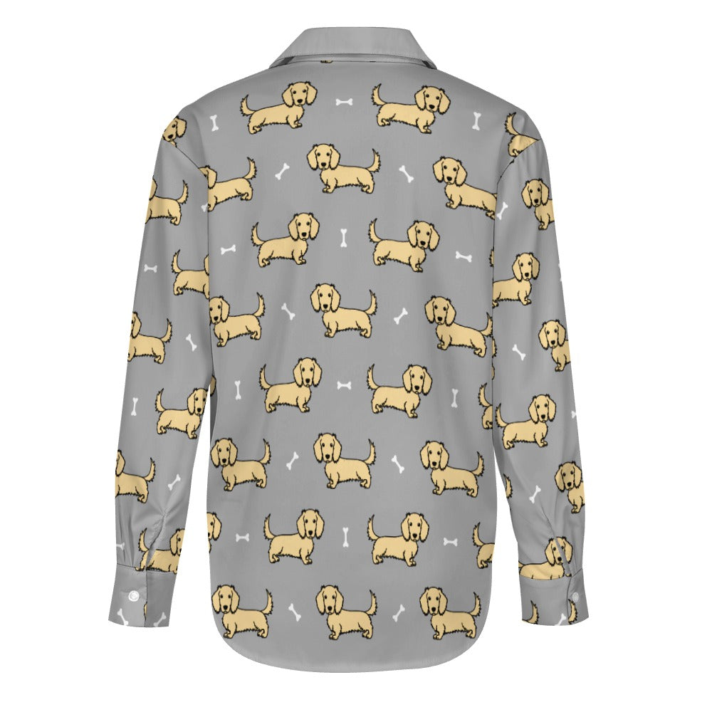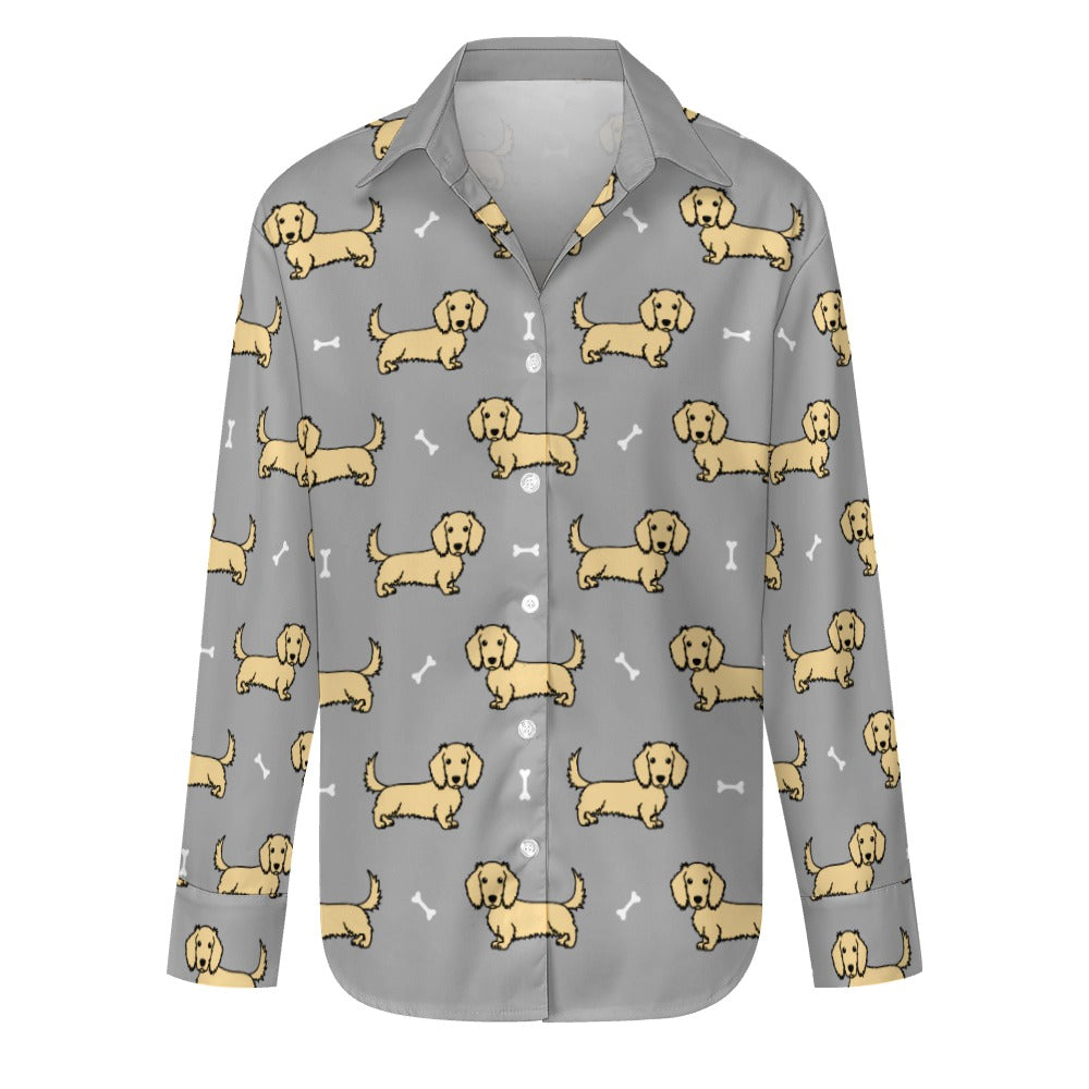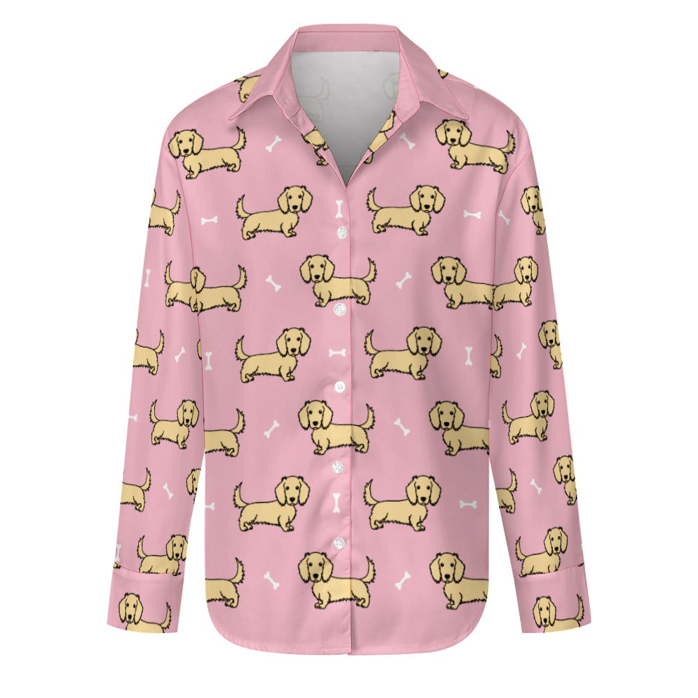 Celebrate your love for the cutest Long Haired Cream Dachshunds with our delightful women's shirt! This charming piece is designed to spread joy and happiness, making it a perfect addition to your wardrobe.