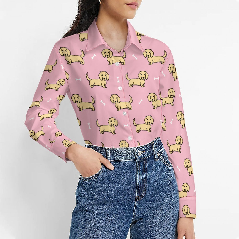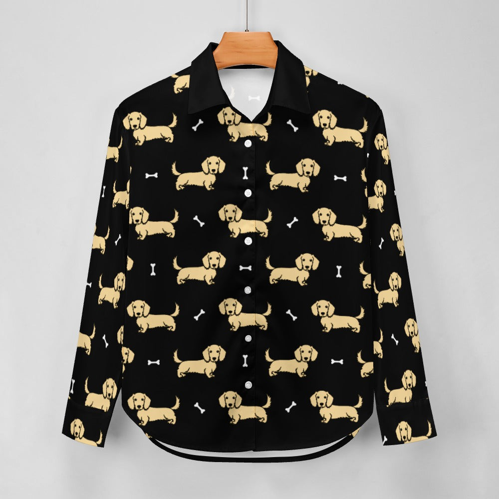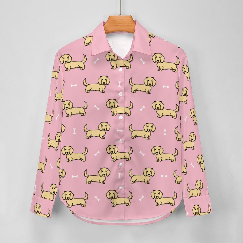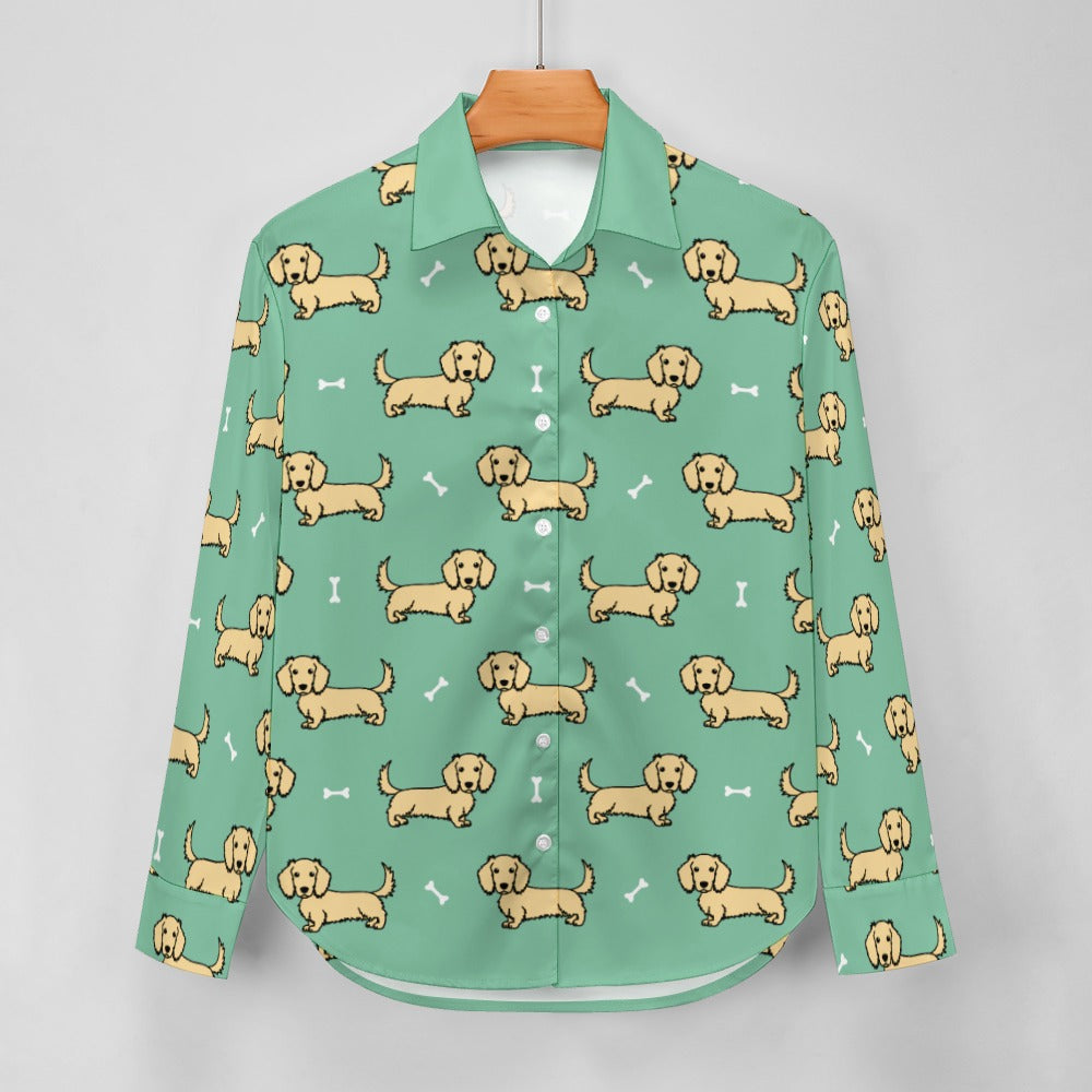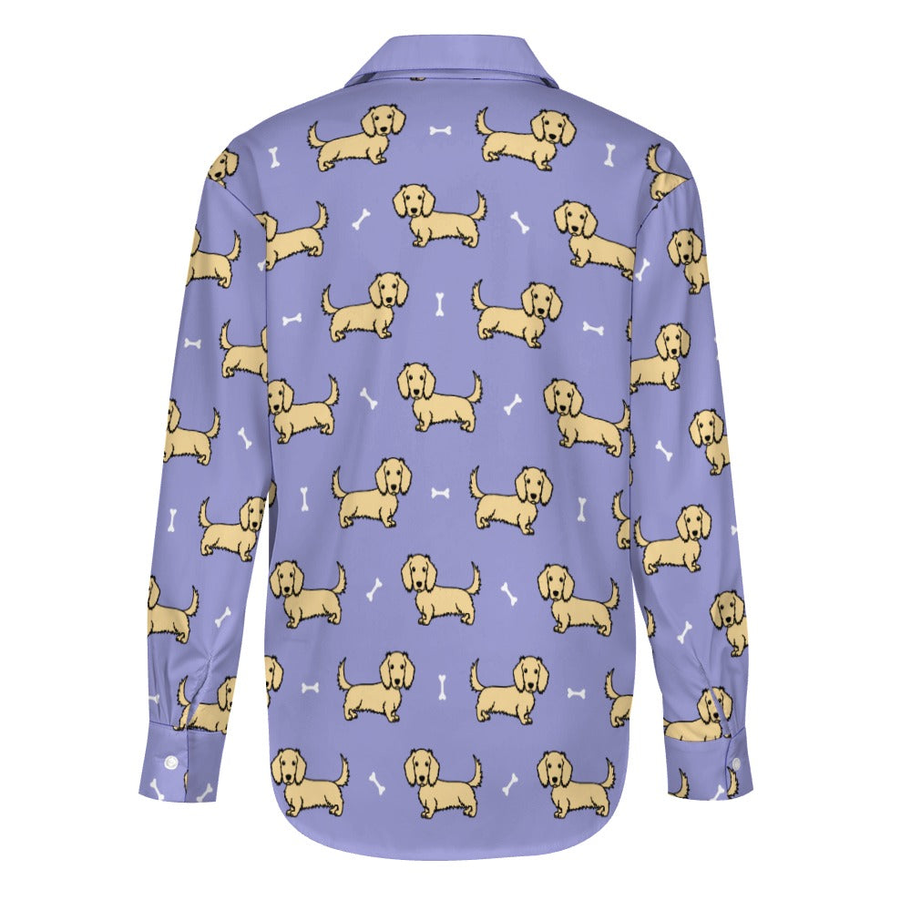 Celebrate your love for the cutest Long Haired Cream Dachshunds with our delightful women's shirt! This charming piece is designed to spread joy and happiness, making it a perfect addition to your wardrobe.