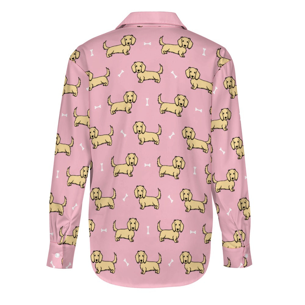 Cutest Long Haired Cream Dachshund Women's Shirt-S-Pink-1