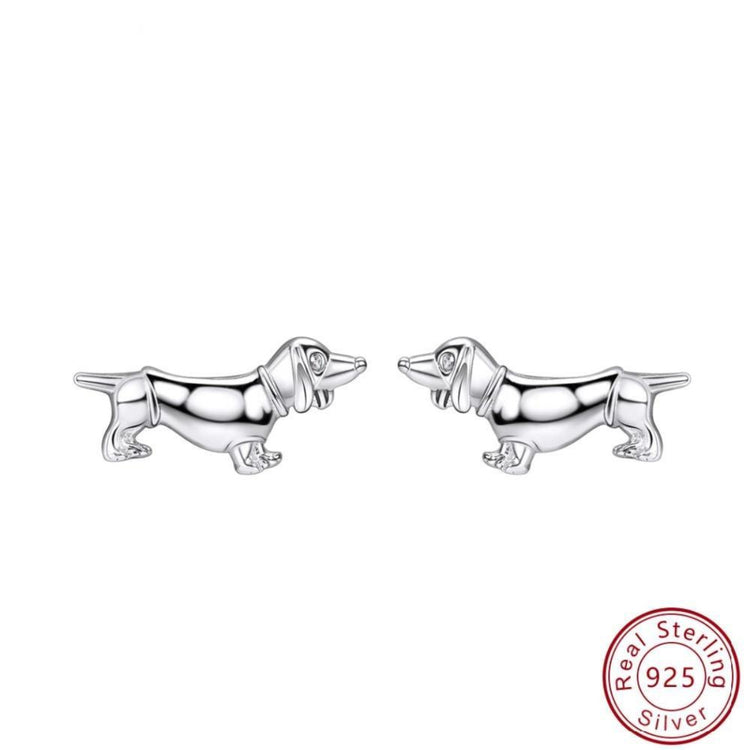 Dachshund Earrings - 925 Silver - Dachshund Love Silver Stud Earrings