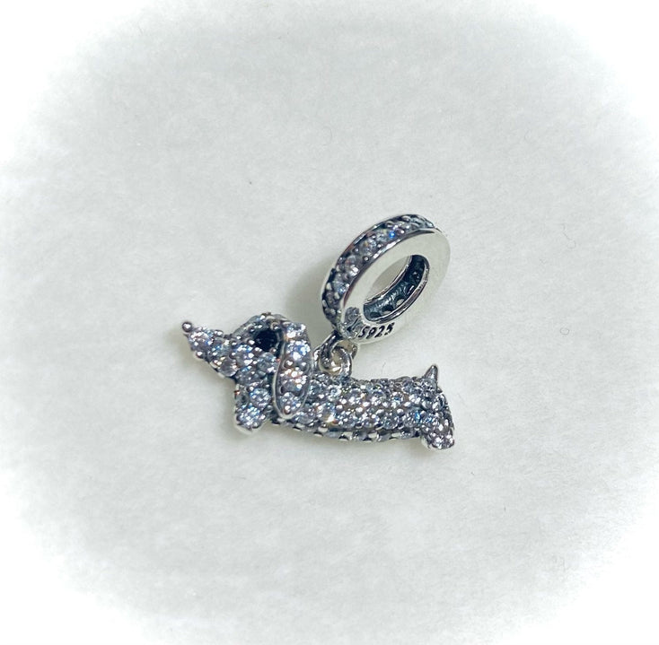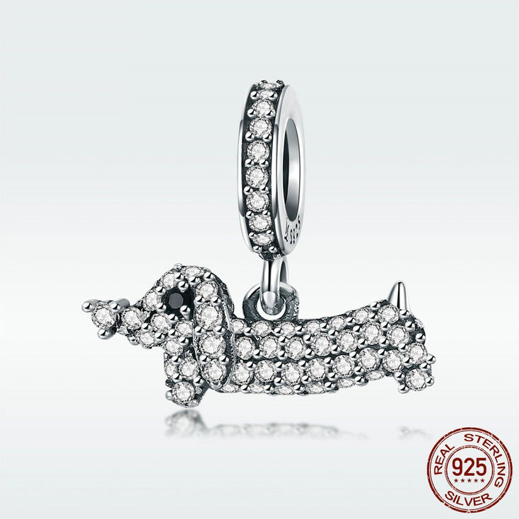 Calling all Dachshund moms! Add a touch of cuteness to your necklace, keychain, handbag, or any accessory with our adorable Dachshund pendant. Handmade with 925 Sterling Silver, this pendant features a super cute, studded, and shiny Wiener-Dog design that will surely melt your heart.