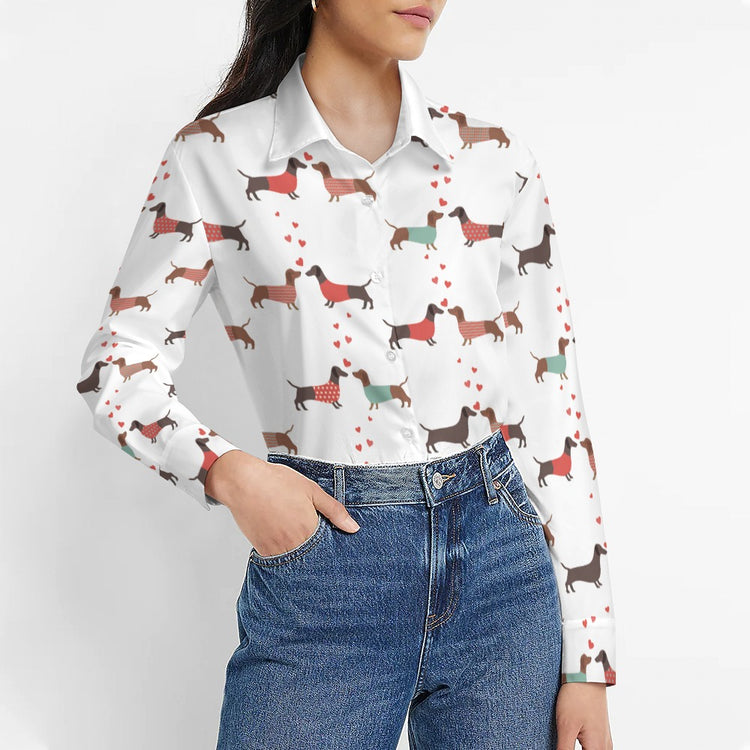 Celebrate your love for Dachshunds with our Kissing Dachshunds Love Women's Shirt, a perfect blend of style and sentiment. This shirt is crafted from Artificial Silk, offering a soft, breathable, and feather-light experience that feels as good as it looks.