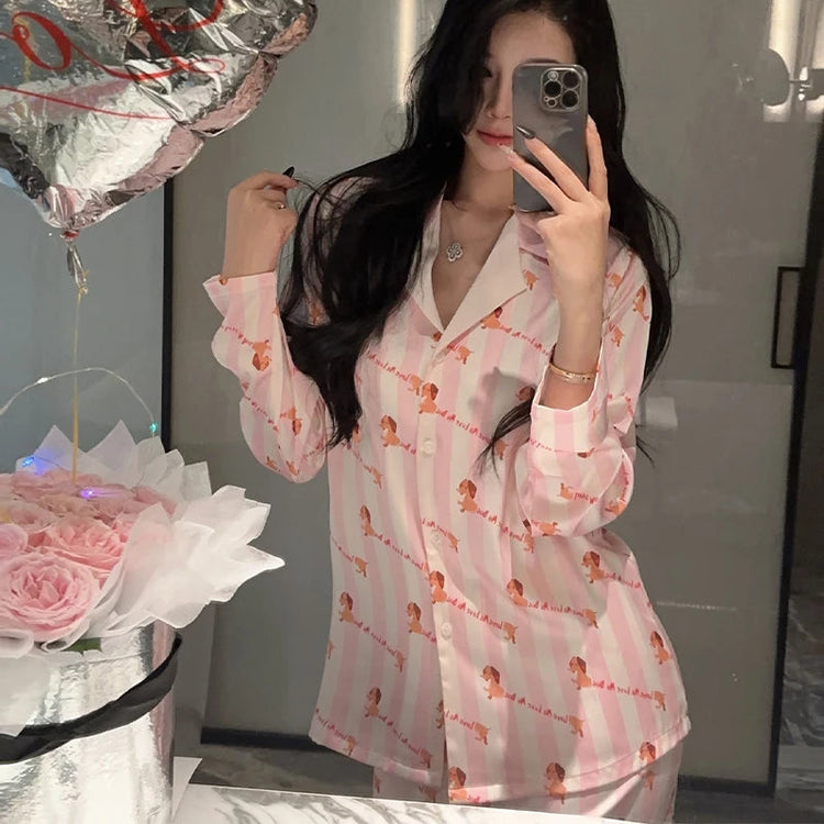 Wrap yourself in comfort and love with our Love Me Love My Dachshund Women's Imitation Silk Pajamas Set.