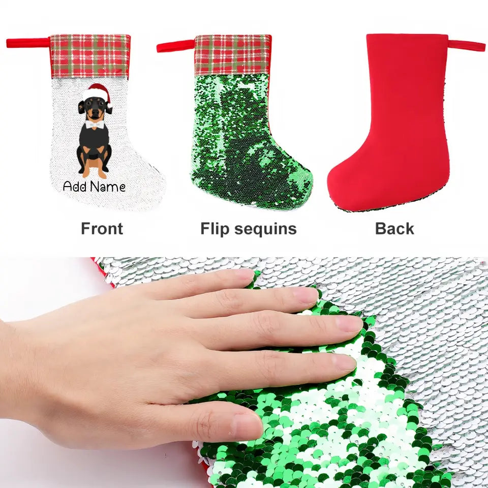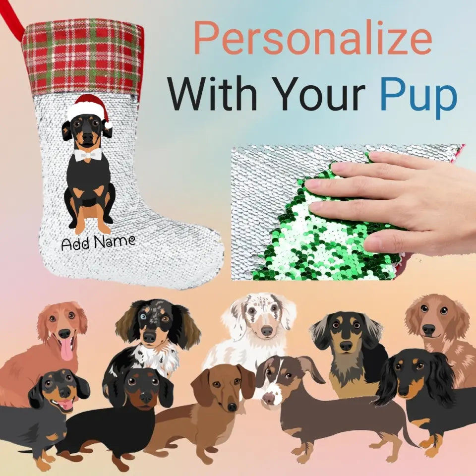 Personalized Dachshund Shiny Sequin Christmas Stocking